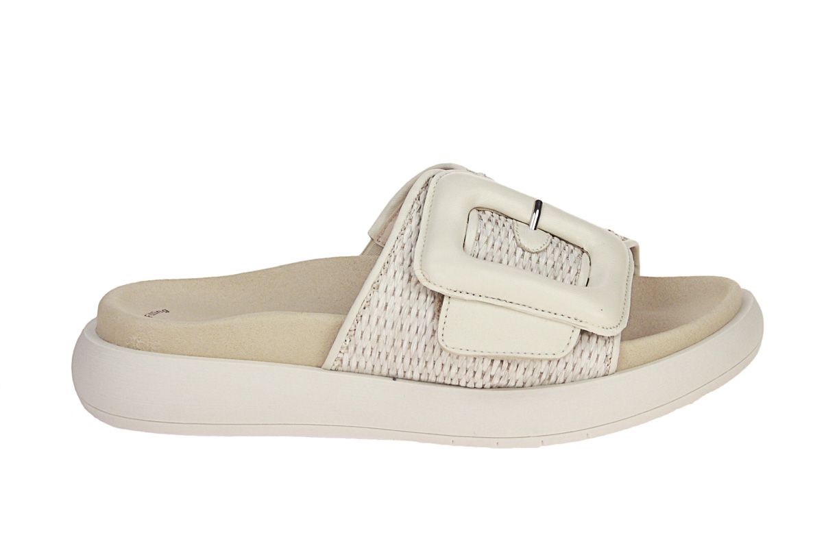 Deze beige lederen damesslipper is van het merk Gabor.