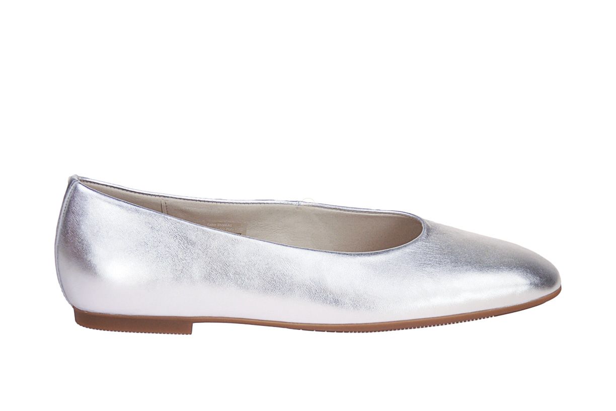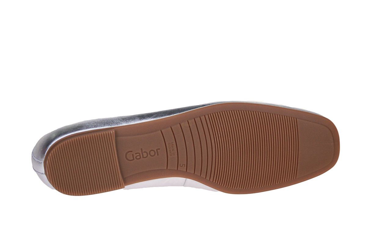Deze zilver lederen damesschoen is van het merk Gabor.