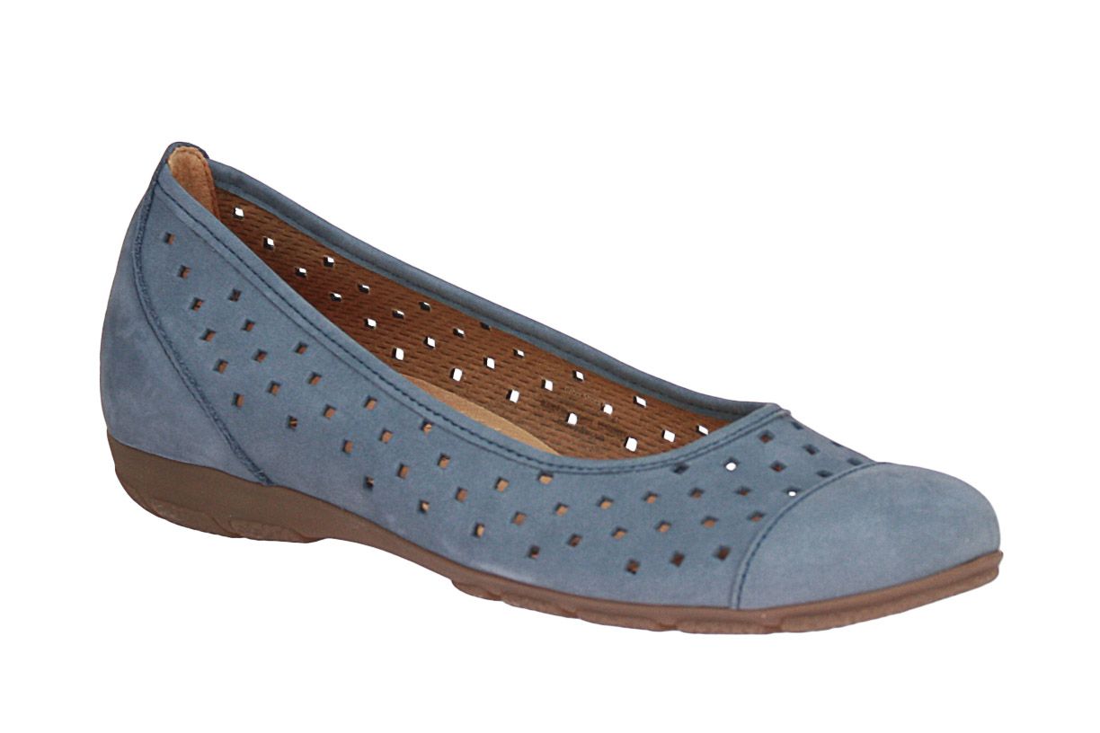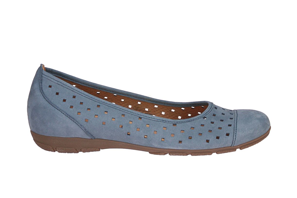 Jeansblauw nubuck damesschoen van het merk Gabor.