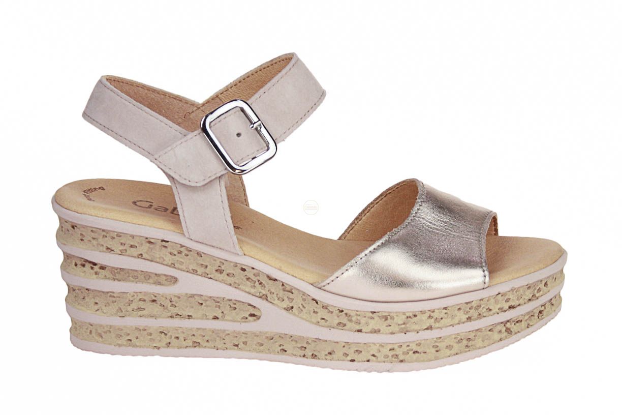 Deze roze lederen damessandaal is van het merk Gabor.