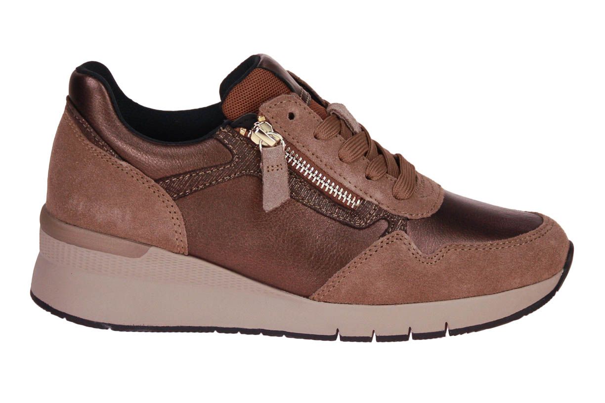 Deze brons metallic lederen damesschoen is van het merk Gabor. Doormiddel van de ritssluiting kan je de schoen makkelijk aan- en uitdoen. De binnenzool is uitneembaar, ideaal voor steunzolen.