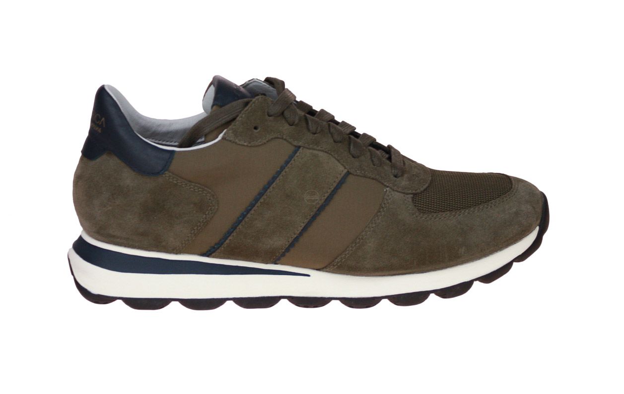 Kaki suède herenschoen van het merk Geox. De binnenzool is uitneembeer, ideaal voor steunzolen.
