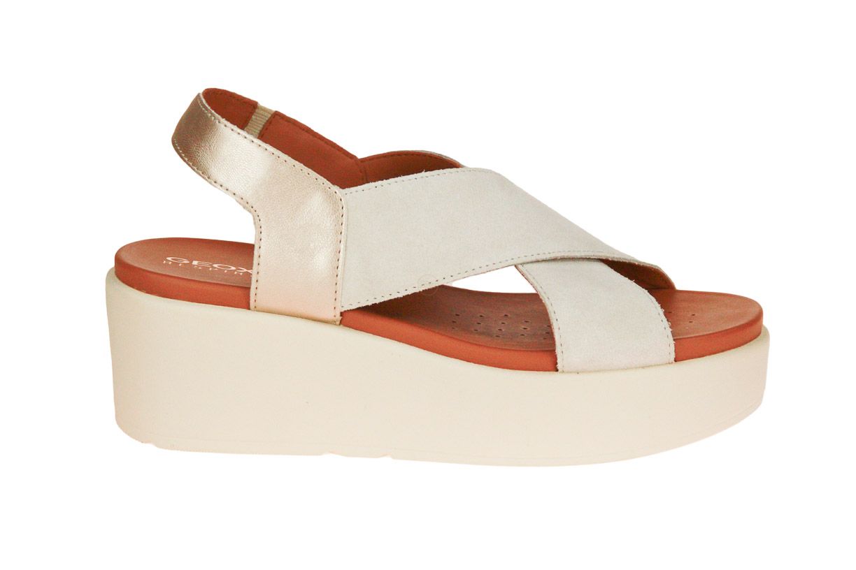Beige suède damessandaal van het merk Geox.