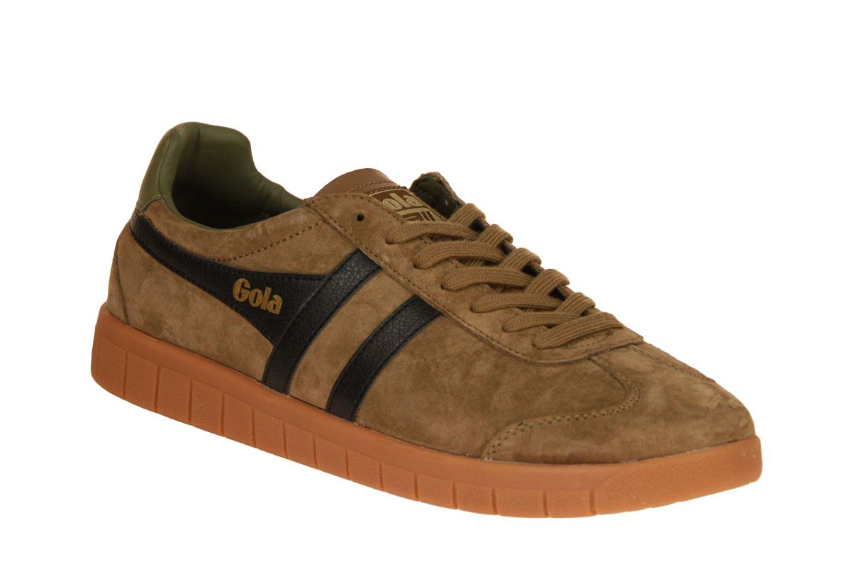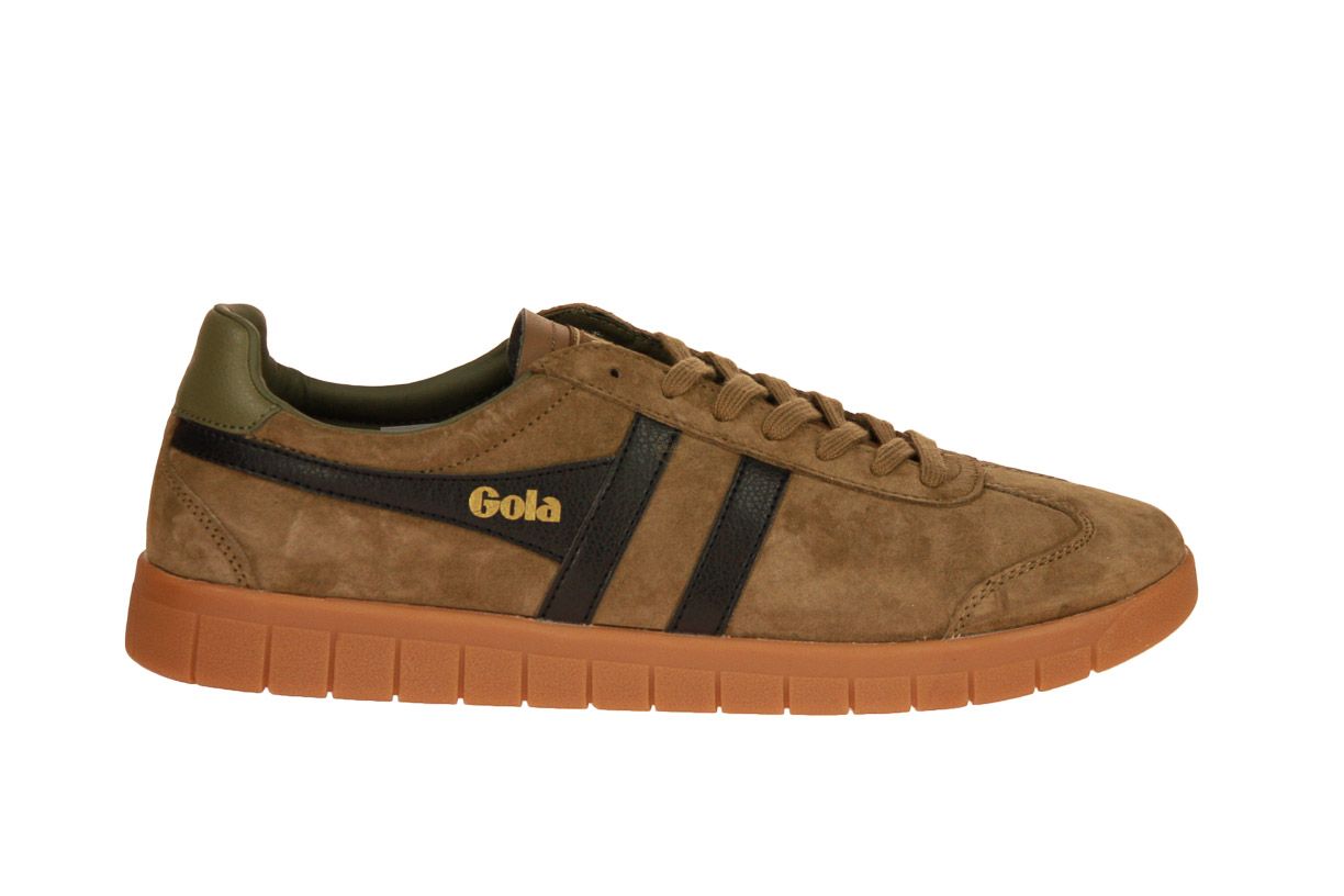 Bruin suède herenschoen met zwarte accenten van het merk Gola.