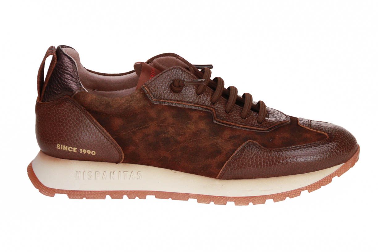 Deze bruin lederen damesschoen is van het merk Hispanitas. De schoen wordt makkelijk aan- en uitgetrokken met de elastische veter. Er wordt een extra paar gewone veters meegeleverd.
