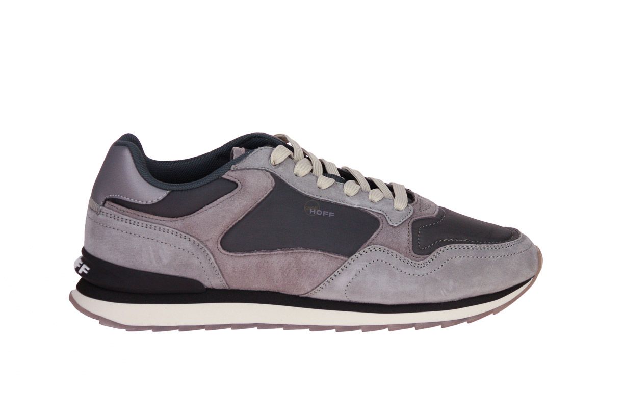 Grijs suède herenschoen van het merk Hoff. De binnenzool is uitneembaar, ideaal voor steunzolen.