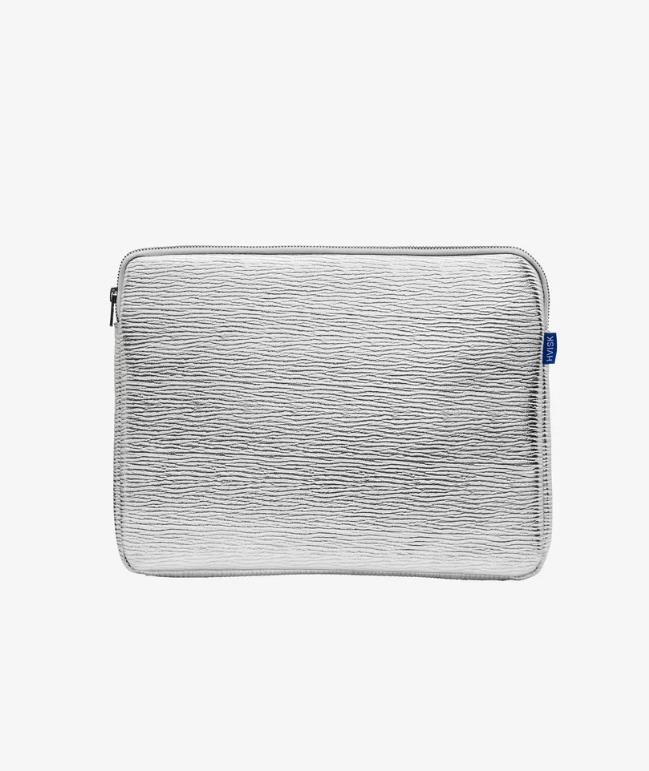 Computer sleeve containing one large compartment, two smaller pockets and a zip closure.