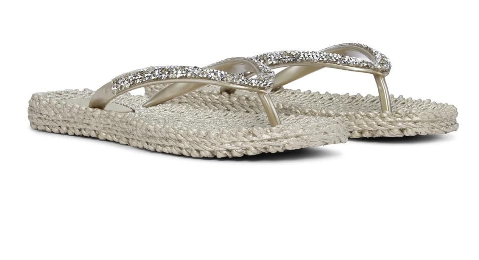 Goud rubberen damesslipper van het merk Ilse Jacobsen.