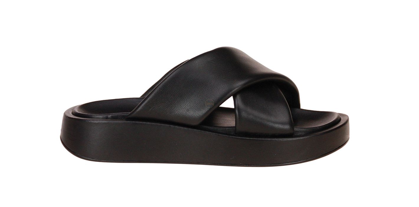 Zwart lederen damesslipper van het merk Inuovo.