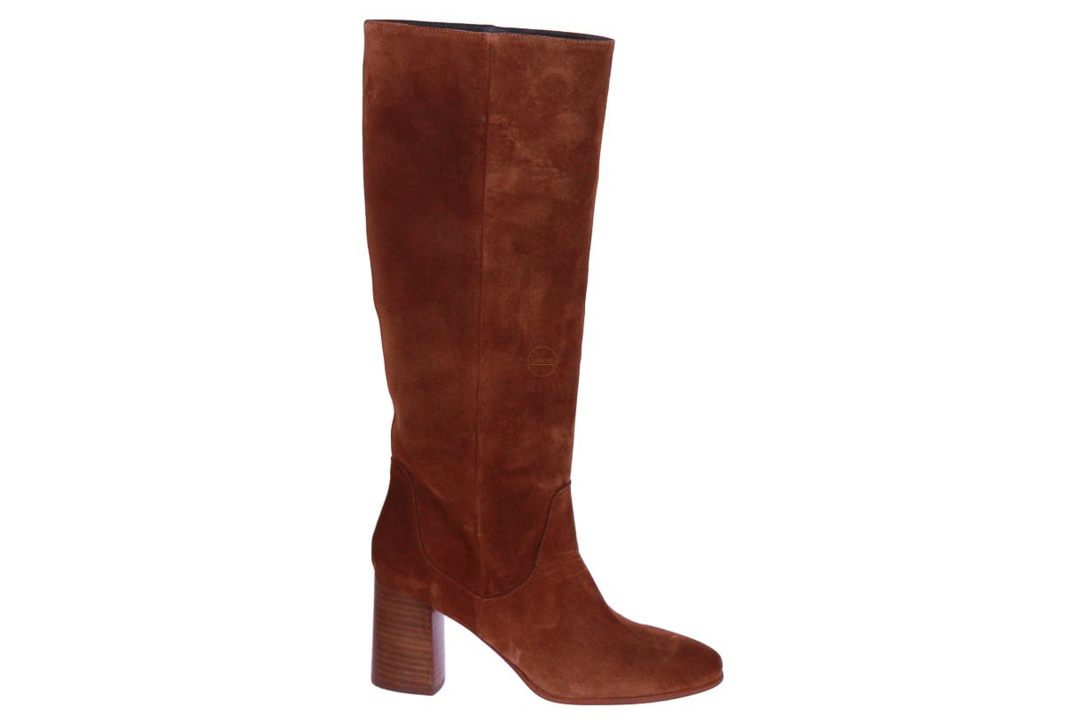 Cognac suede lange dameslaars van het merk Kanna.