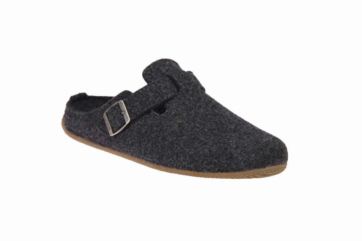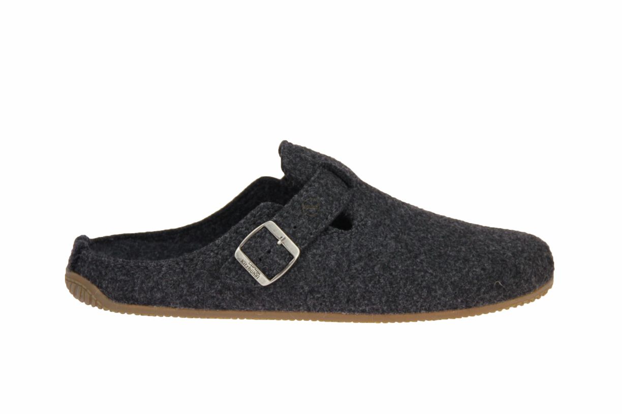 Grijs wollen herenpantoffel van het merk Kitzbuhel. De binnenzool is uitneembaar, ideaal voor steunzolen. Bestel online - gratis levering