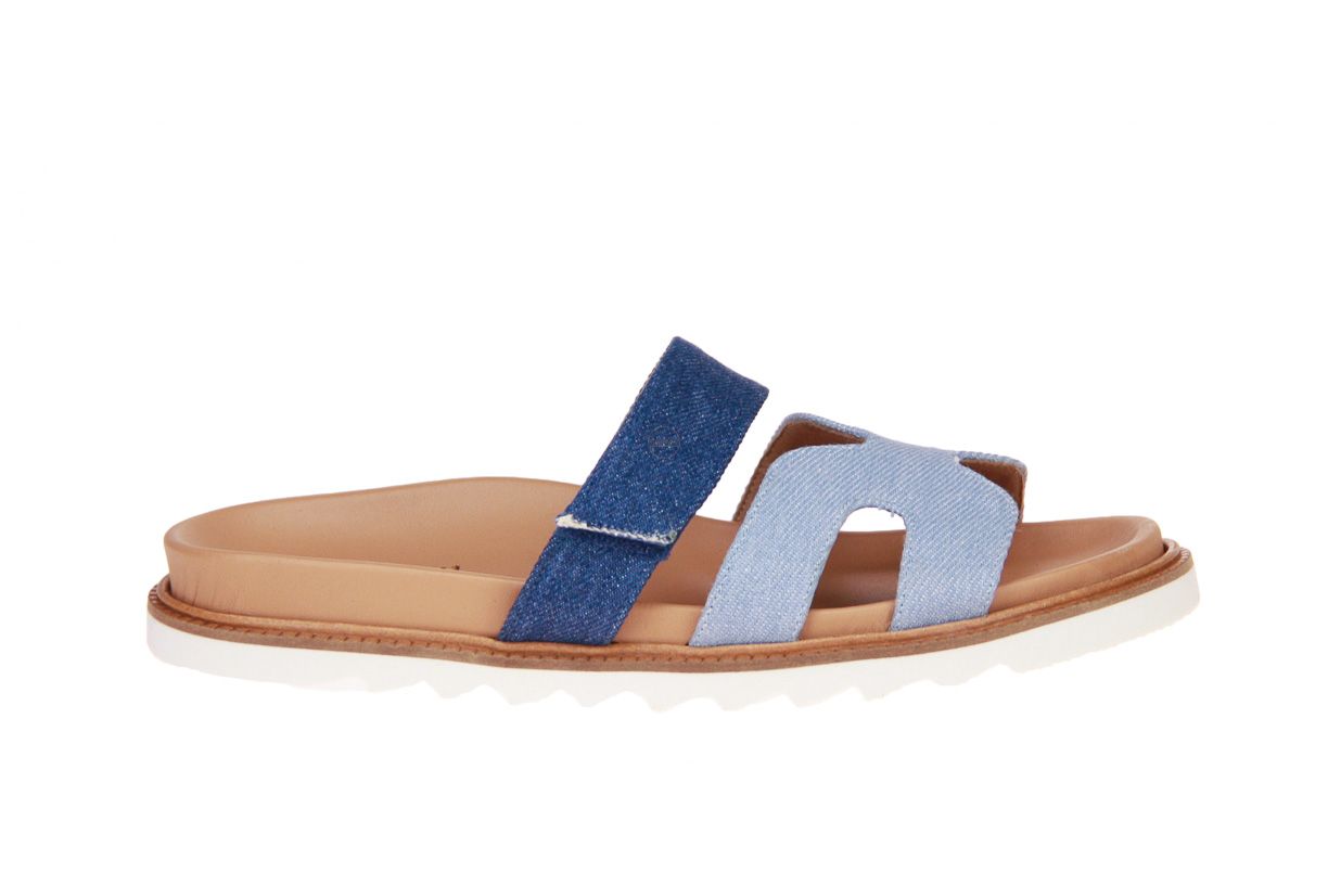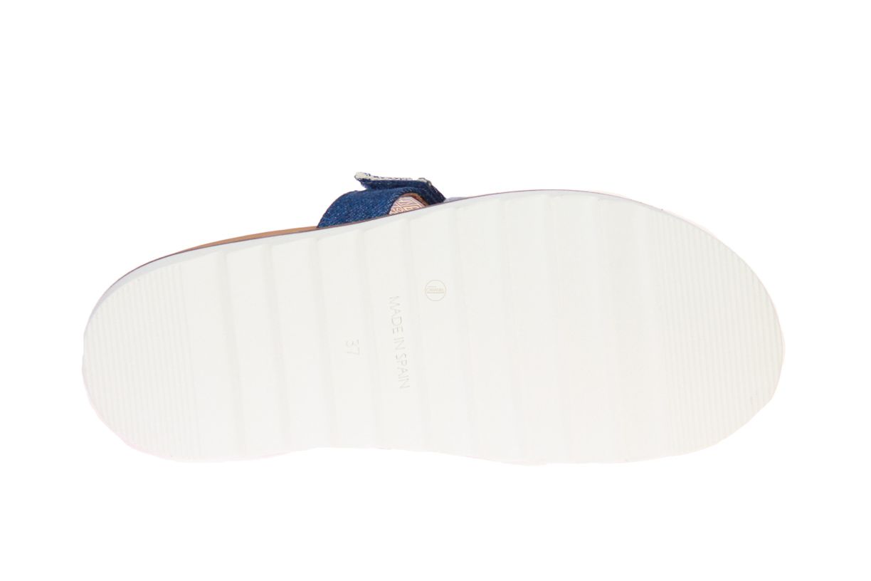 Jeansblauw textielen damesslipper van het merk KMB.