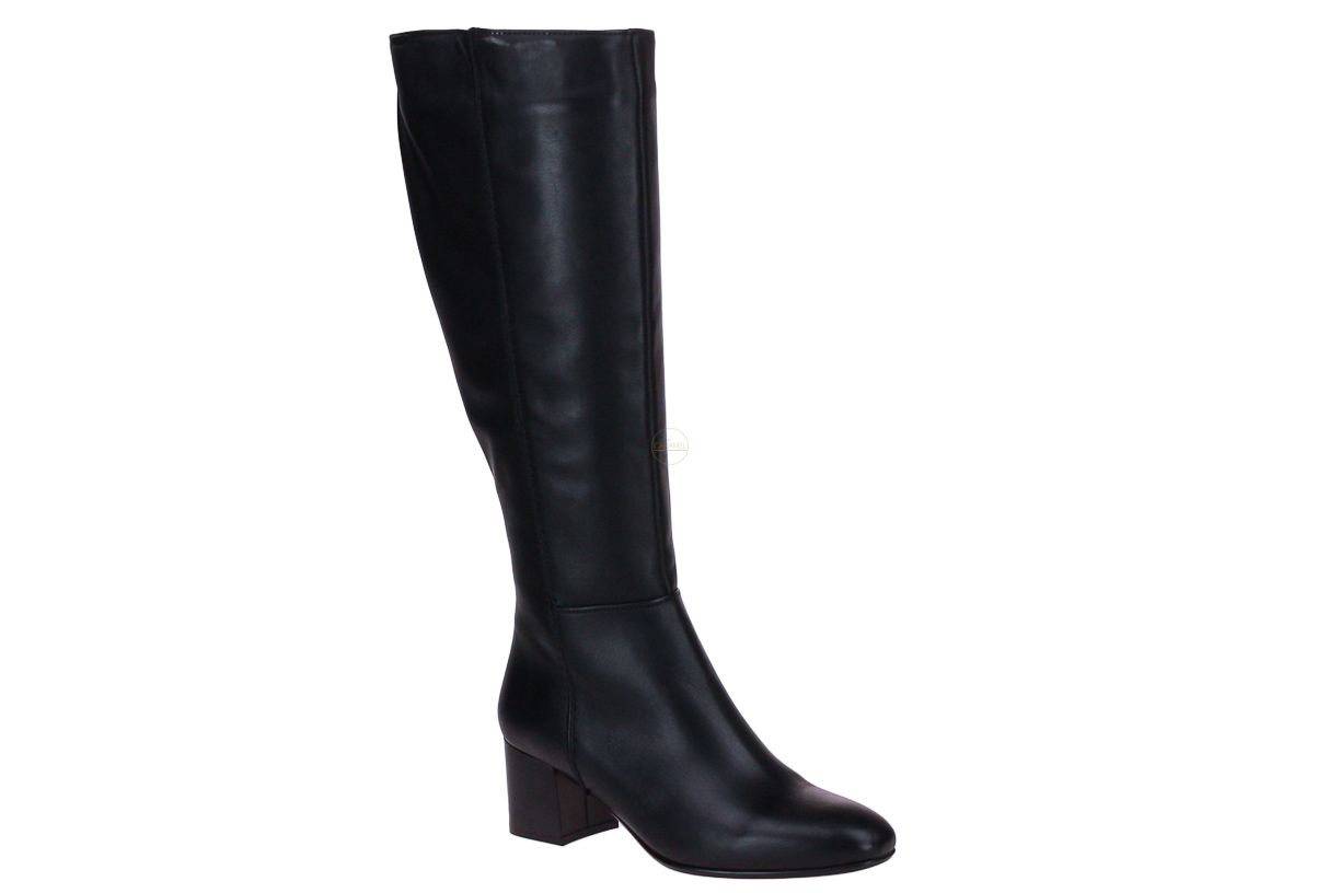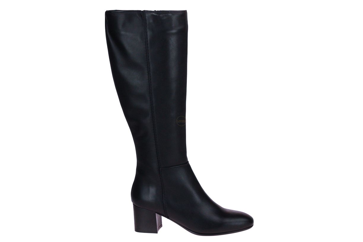 Zwart lederen dameslaars van het merk Lamica. De kuitbreedte is large