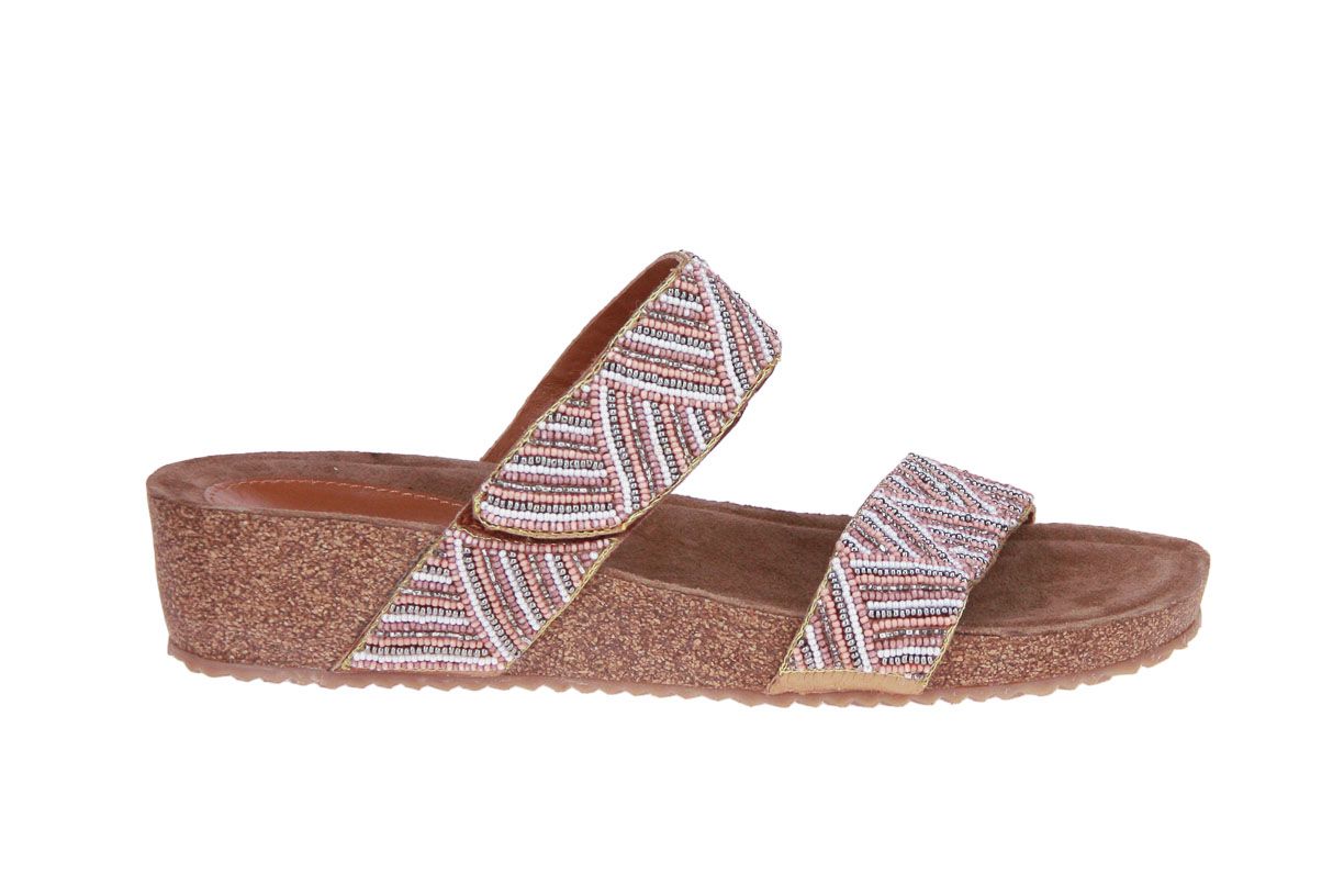 Beige textielen damesslipper van het merk Lazamani.