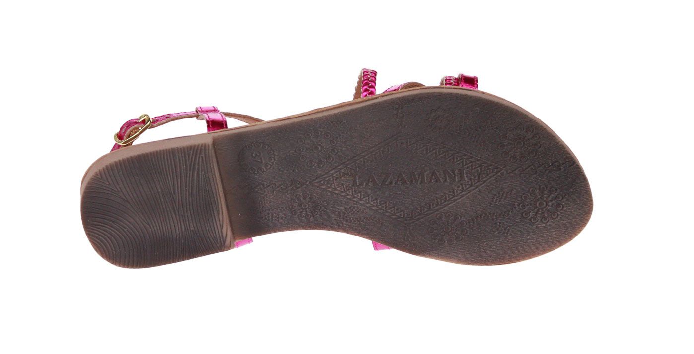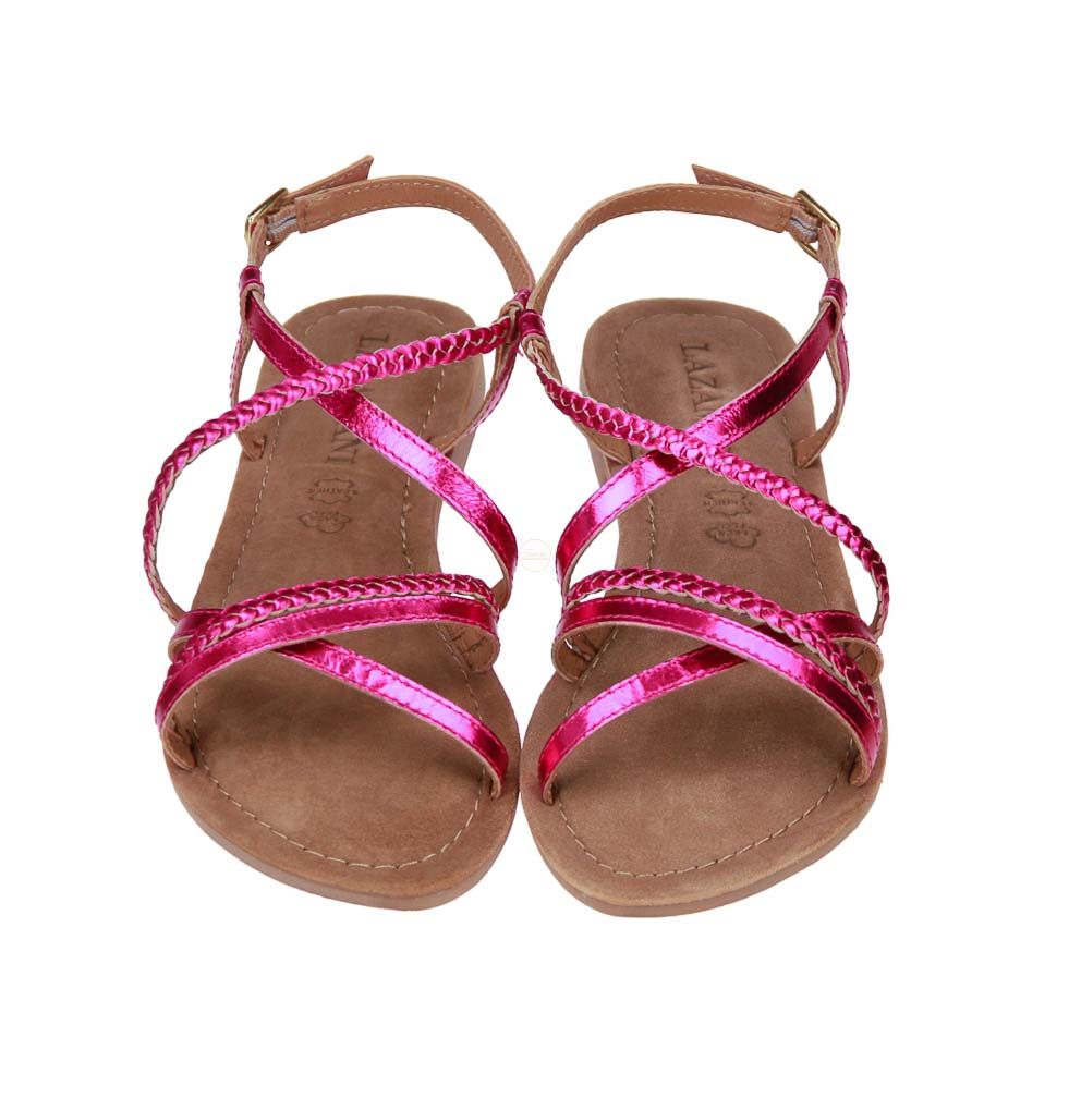 Roze metallic lederen damessandaal van het merk Lazamani.