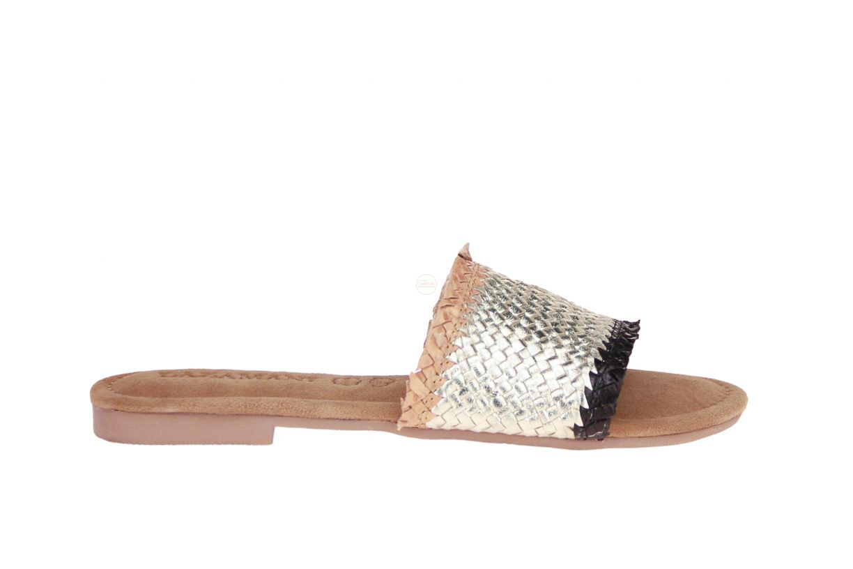 Goud lederen damesslipper van het merk Lazamani.