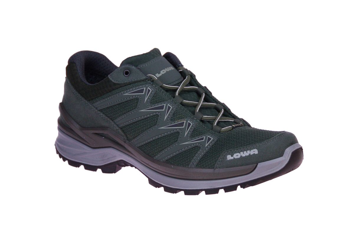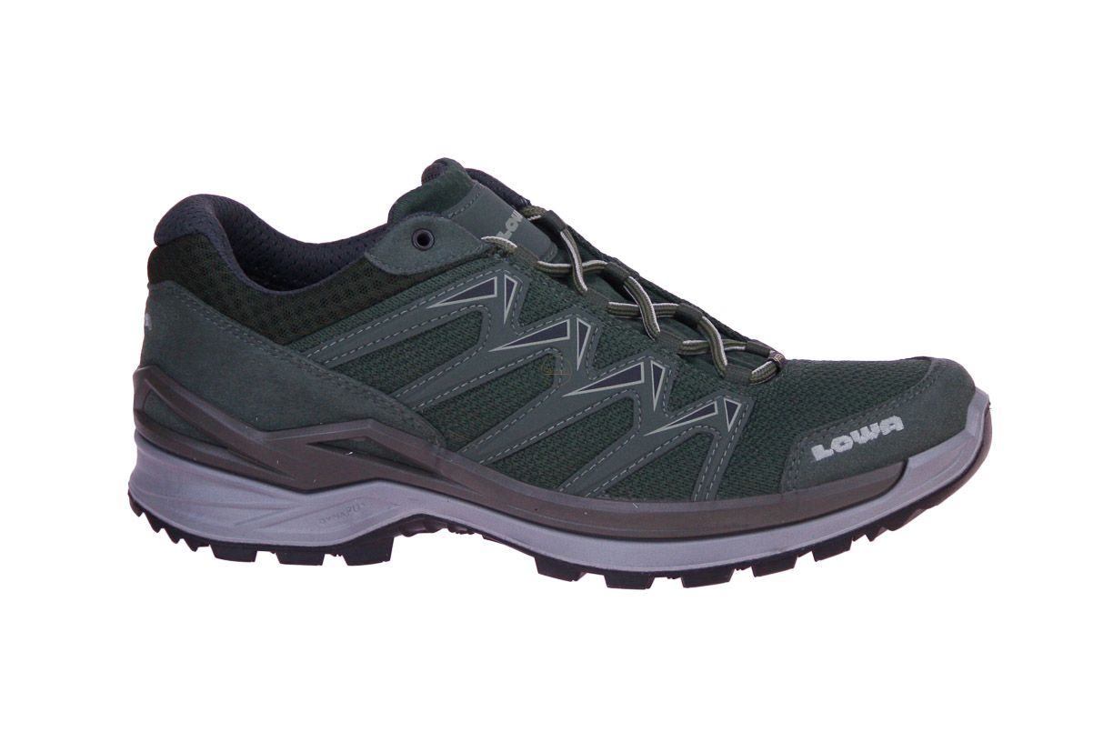 Kaki suede/textielen wandelschoen van het merk Lowa. Dit model is gore-tex, waterdicht!