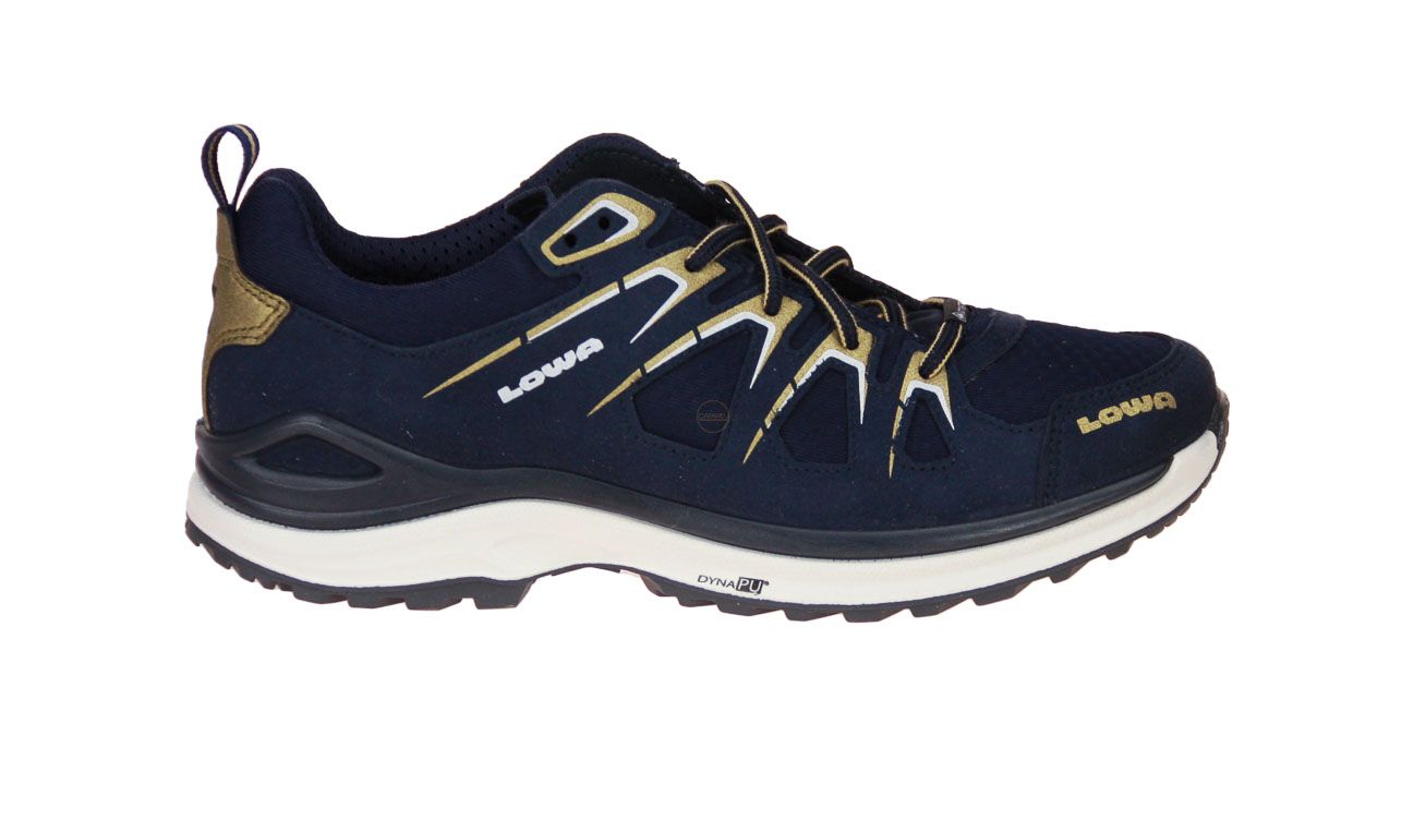 Blauw textielen lage wandelschoen voor dames van het merk Lowa.