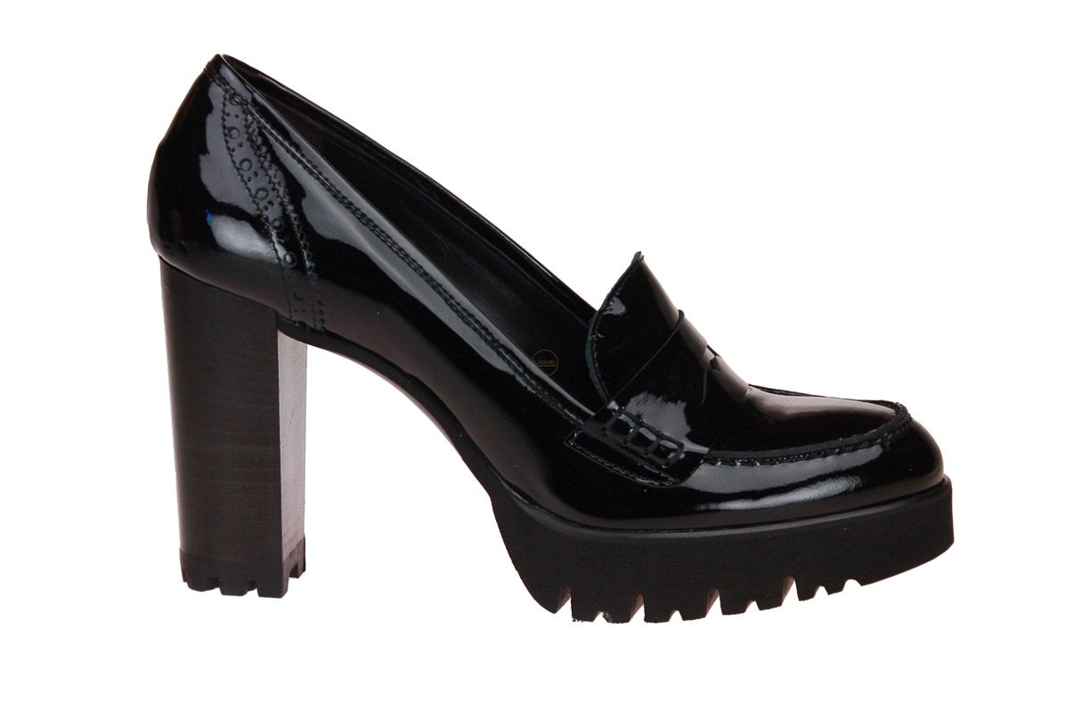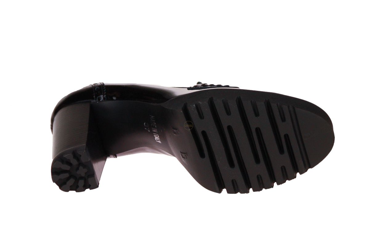 Zwart laklederen damesschoen van het Italiaanse merk Luca Grossi.