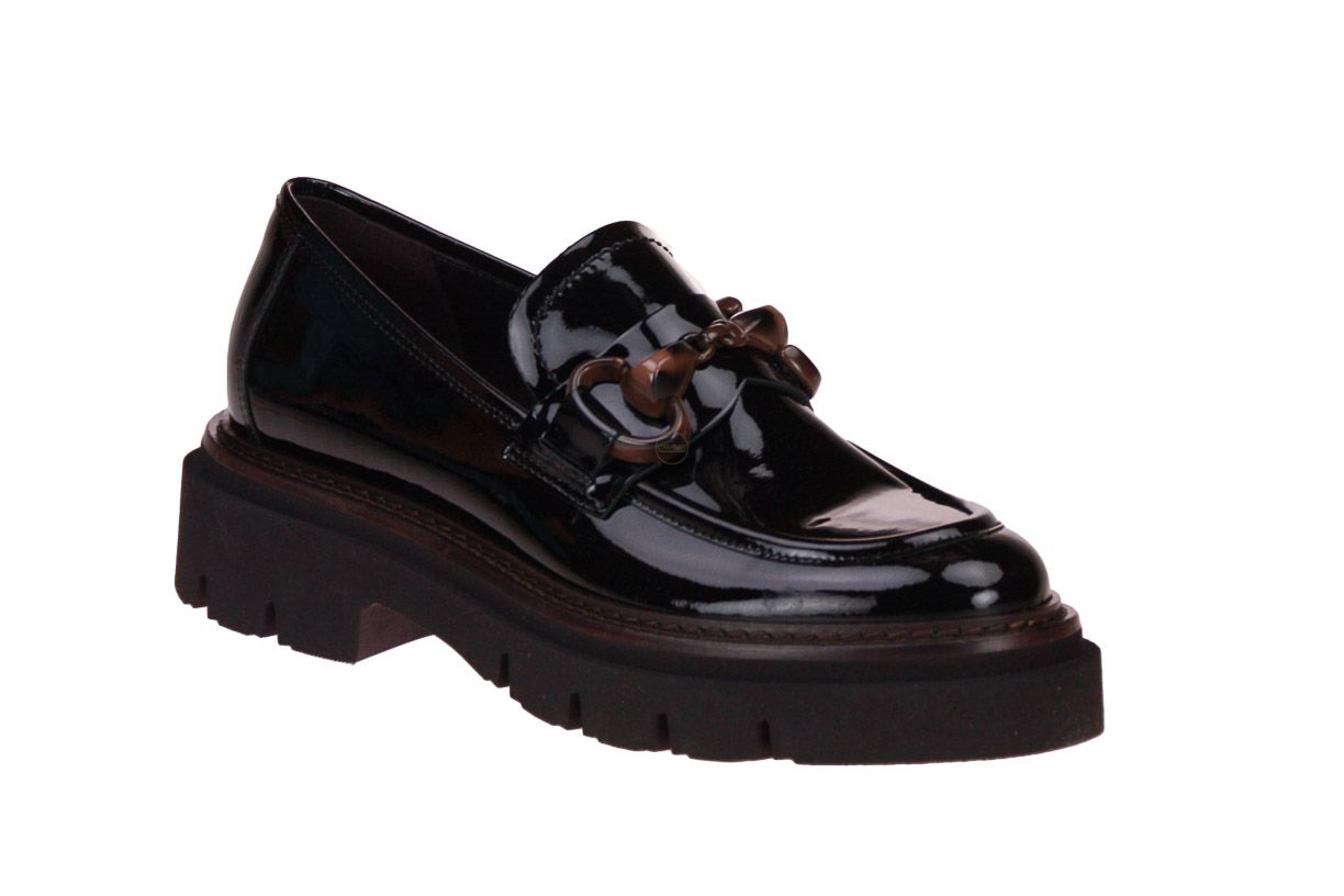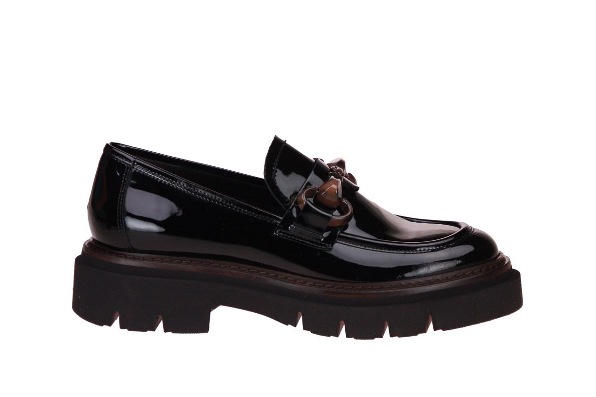 Zwart laklederen damesschoen van het merk Luca Grossi.