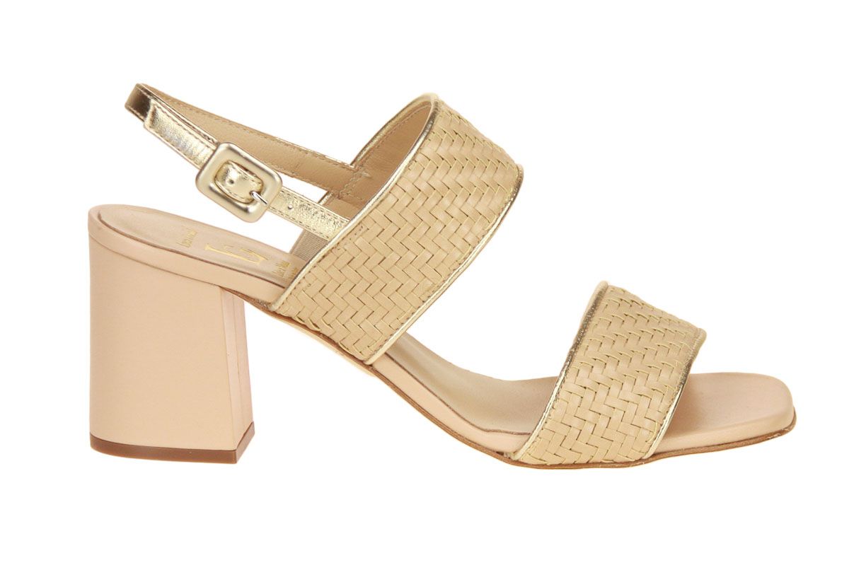 Beige lederen damessandaal van het merk Luca Grossi. De sandaal is afgewerkt met gouden accenten.