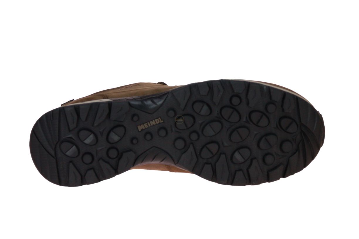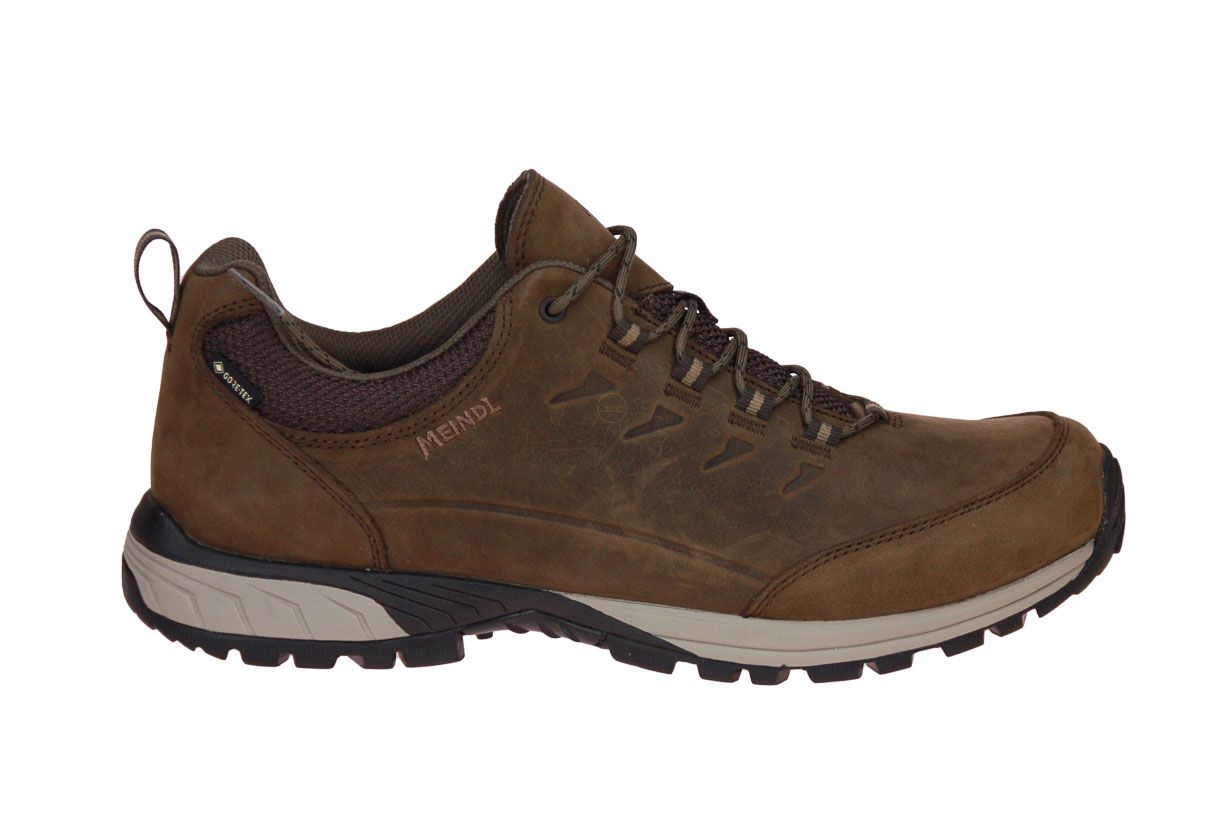 Bruin gevetlederen lage wandelschoen voor heren van het merk Meindl. De binnenzool is uitneembaar, ideaal voor steunzolen.
