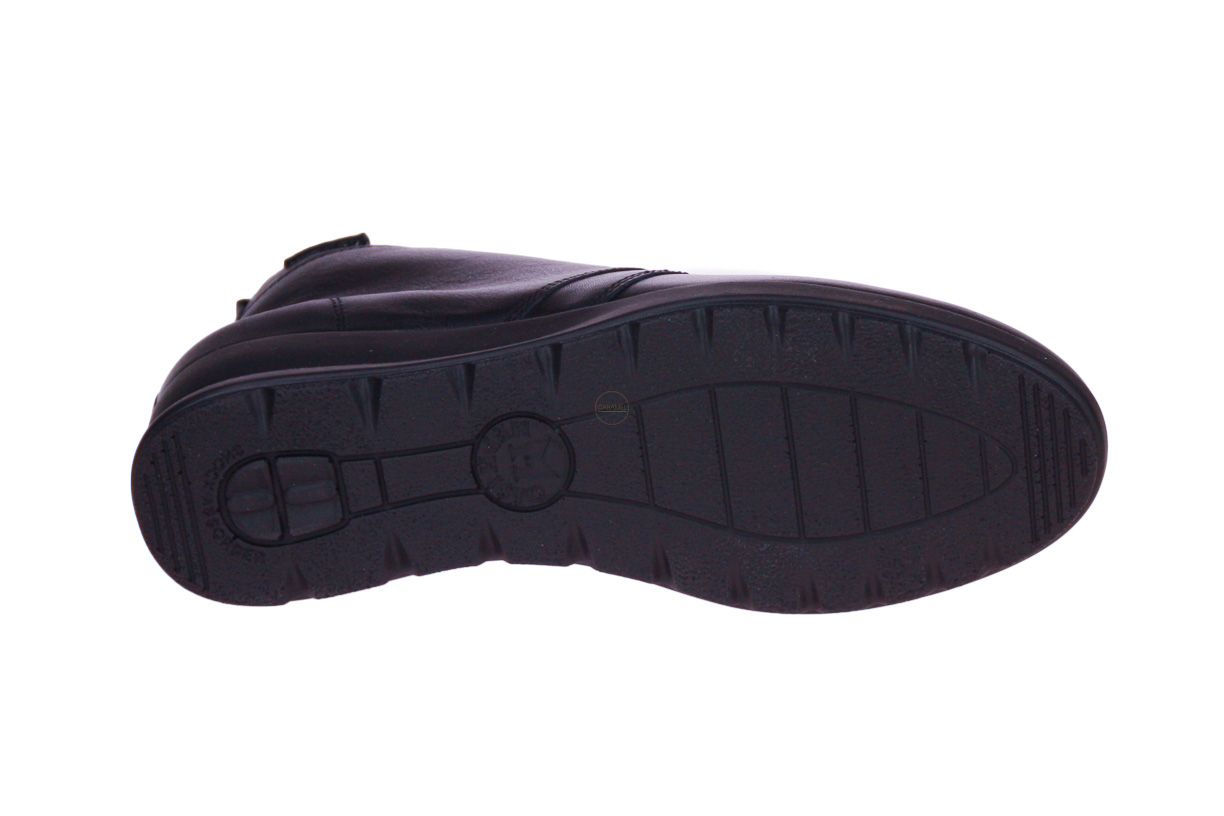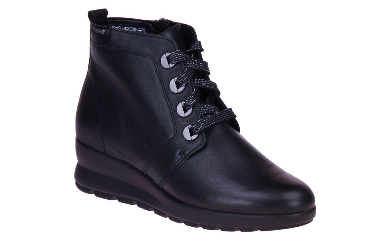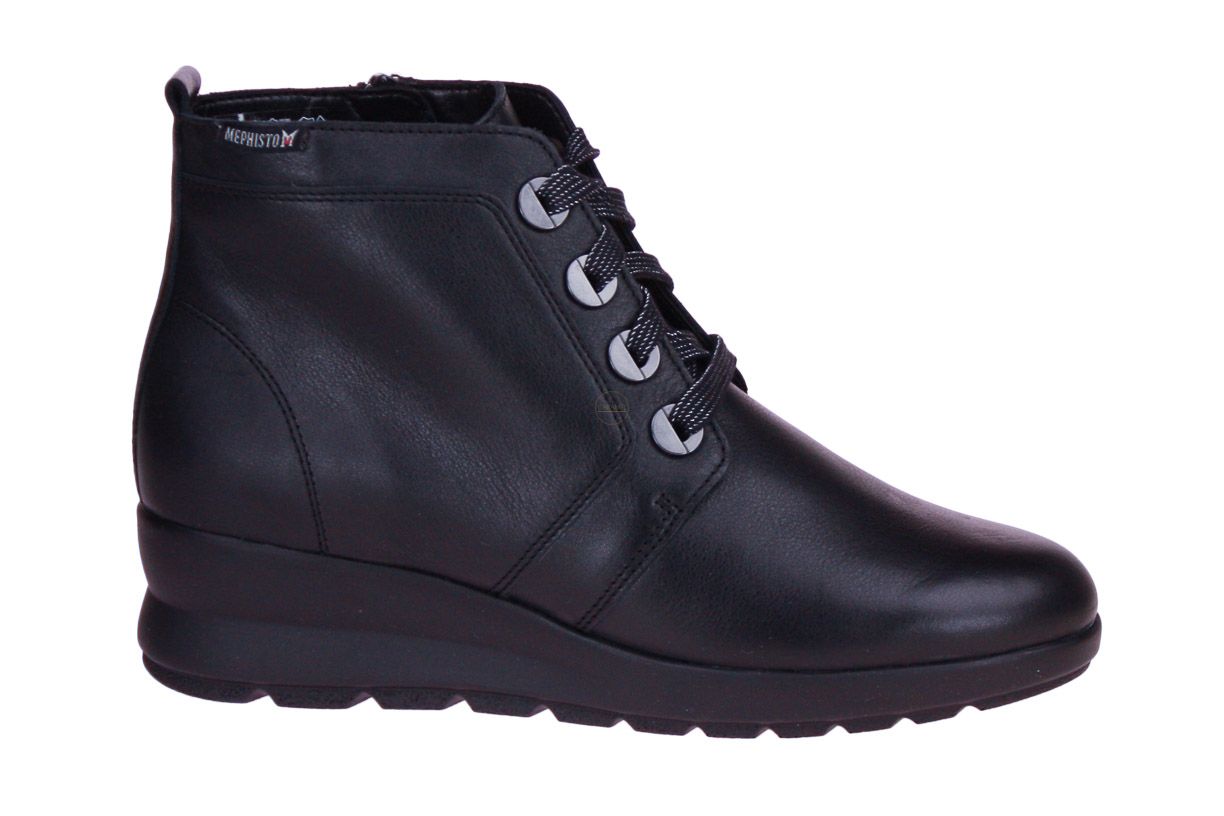 Zwart lederen damesschoen van het merk Mephisto. De binnenzool is uitneembaar, ideaal voor steunzolen.