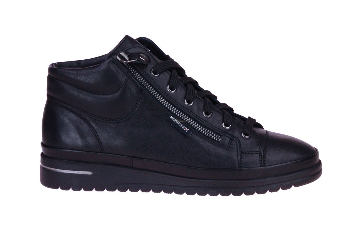 Zwart hoog lederen damesschoen van het merk Mephisto. De binnenzool is uitneembaar, ideaal voor steunzolen.