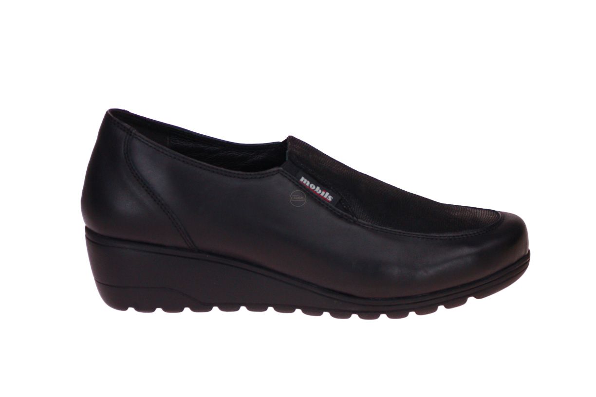 Zwart lederen damesschoen van het merk Mephisto Mobils Ergonomic. De binnenzool is uitneembaar, ideaal voor steunzolen.