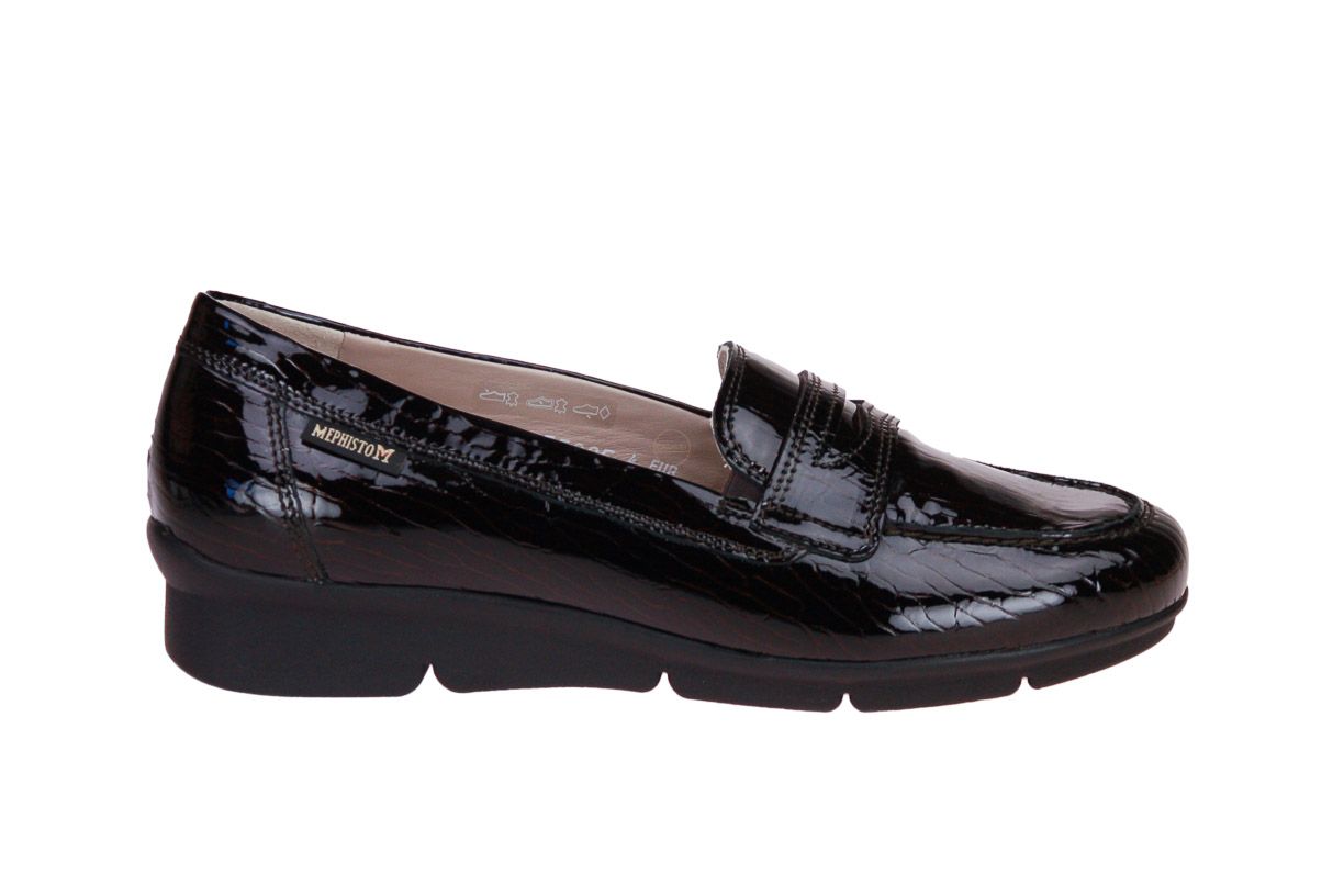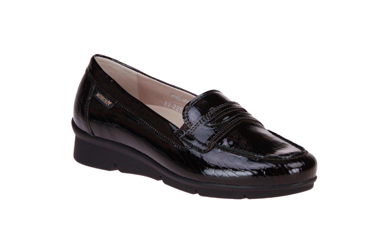 Bruin laklederen damesschoen van het merk Mephisto. De binnnezool is uitneembaar, ideaal voor steunzolen.