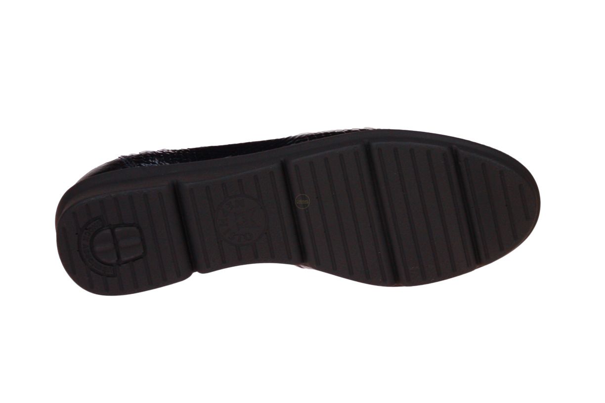 Blauw laklederen damesschoen met crocoprint van het merk Mephisto. De binnenzool is uitneembaar, ideaal voor steunzolen.