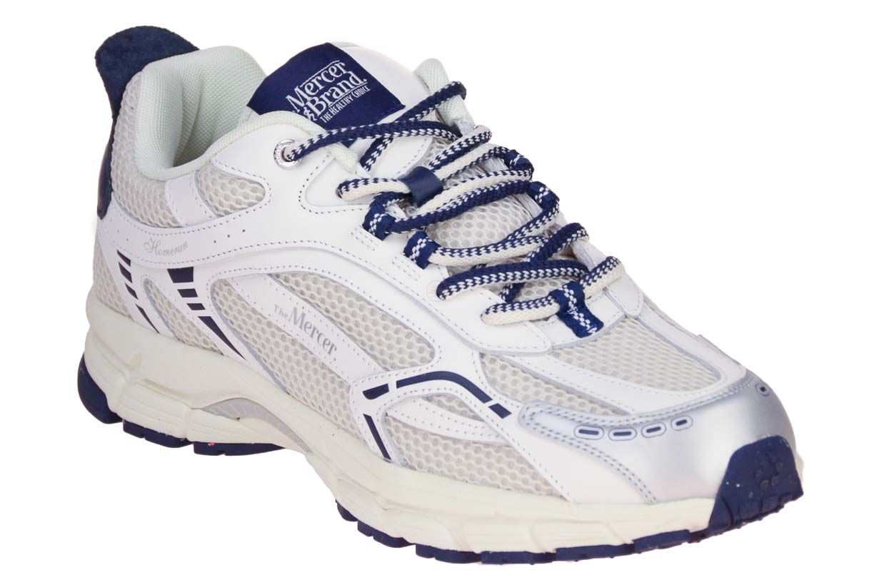 Deze wit lederen herenschoen is van het merk The Mercer Brand. De binnenzool is uitneembaar, ideaal voor steunzolen.