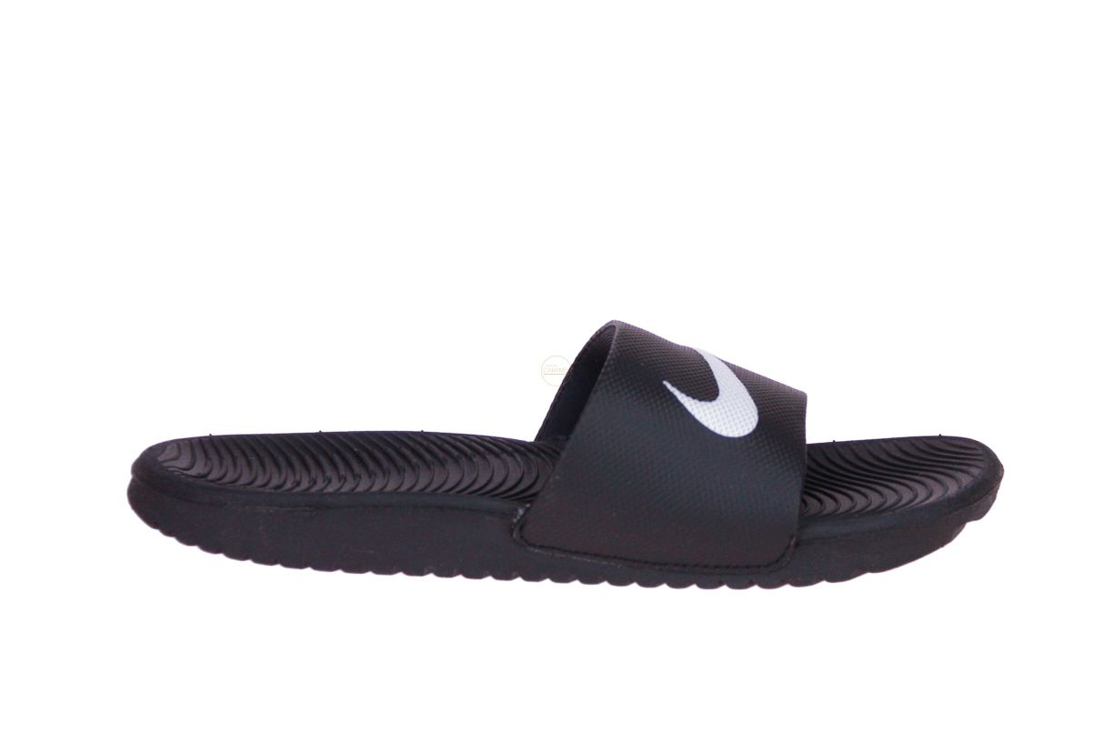Zwart rubberen kinderslipper van het merk Nike.