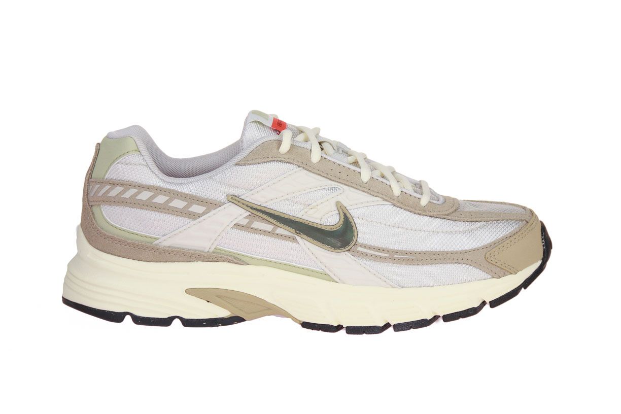 Beige suède sneaker met kaki accenten van het merk Nike.