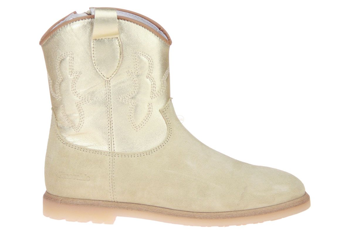 Goud lederen korte meisjeslaars met beige accenten van het merk Pinocchio.