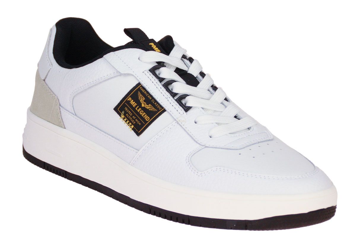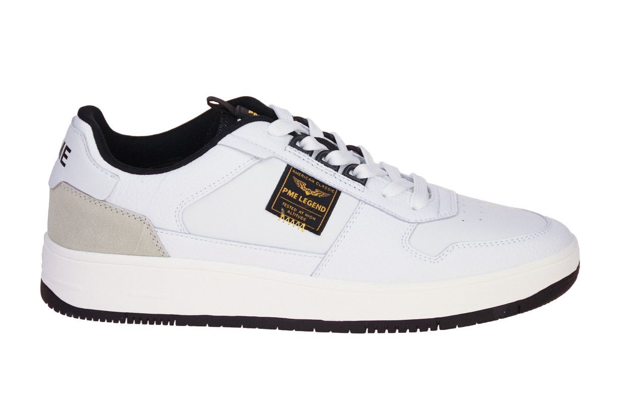 Deze wit lederen herenschoen is van het merk PME Legend.