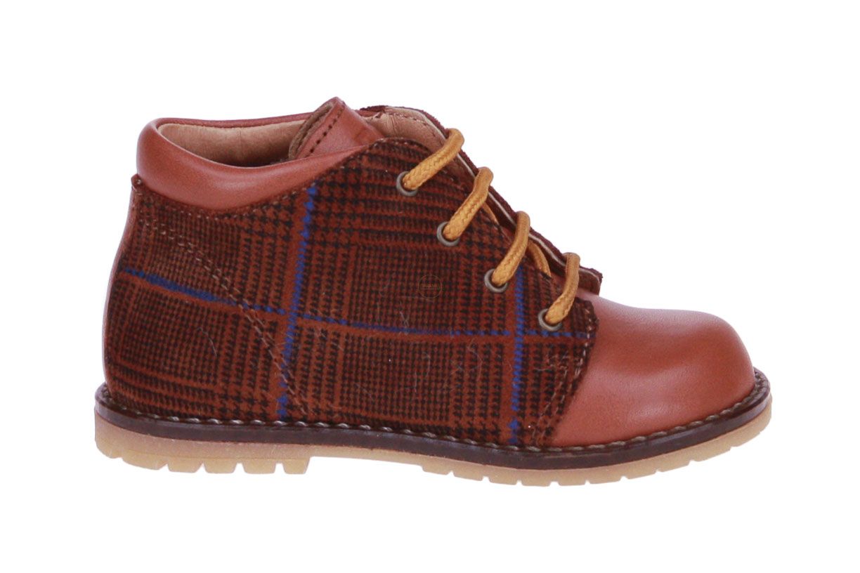 Cognac lederen jongensschoen met suède accenten van het merk Romagnoli.