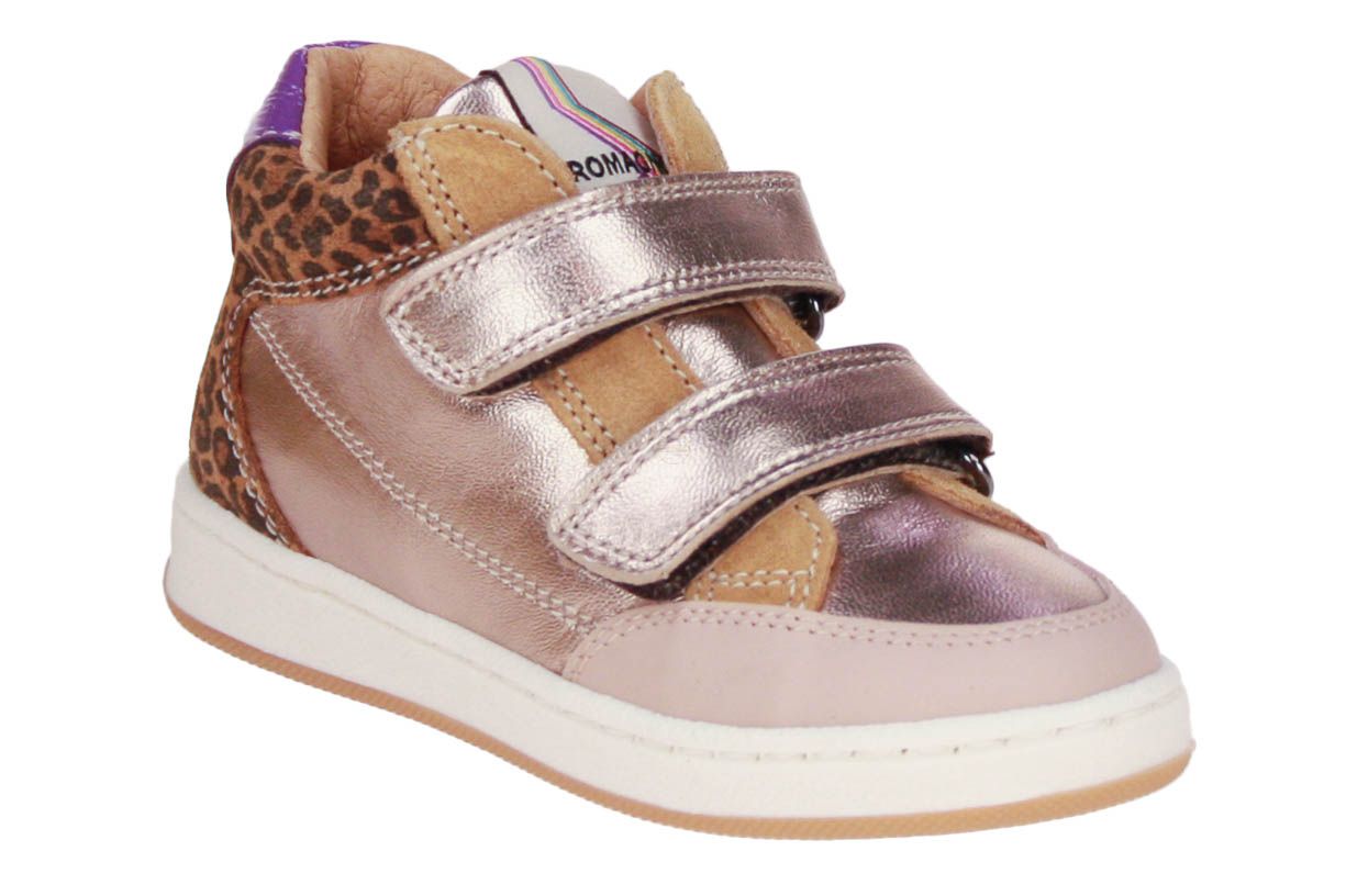 Deze roze metallic lederen meisjesschoen is van het merk Romagnoli. De binnenzool is uitneembaar, ideaal voor steunzolen.