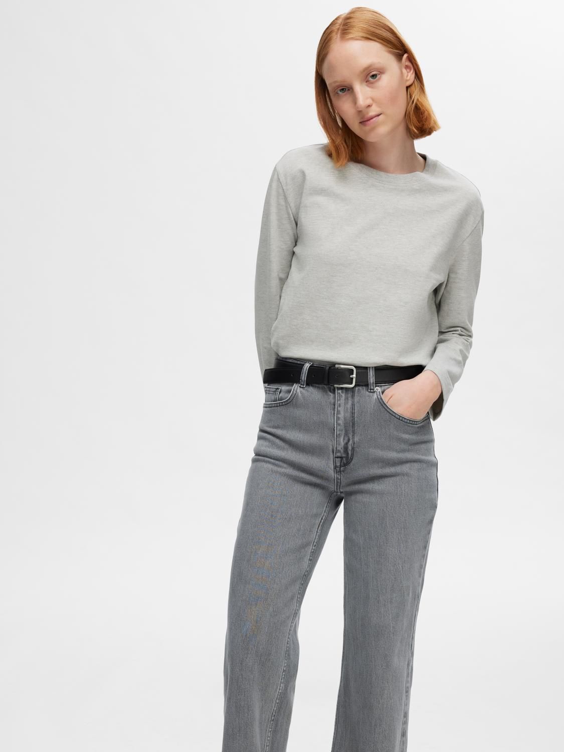 Selected Femme Alice HW Wid Long Eloise Light Grey Denim  (16094543 light grey denim) - MerkenOutlet