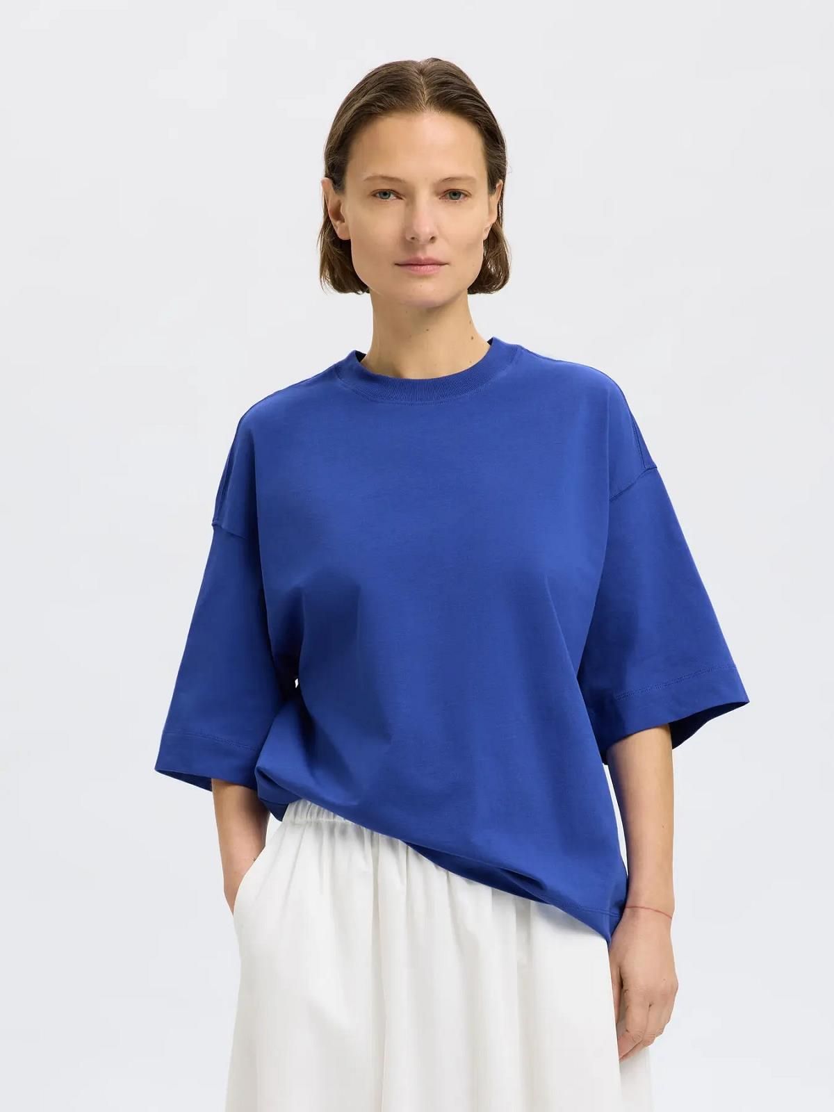 Selected Femme Colwoman 2/4 Oversized Tee Dazzling Blue  (16097896 dazzling blue) - MerkenOutlet