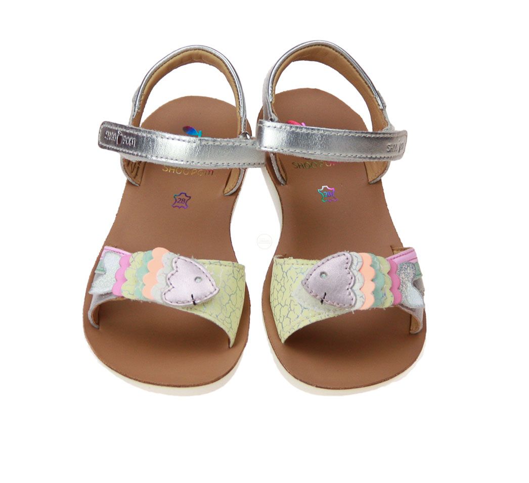Zilver lederen meisjessandaal van het merk Shoopom.