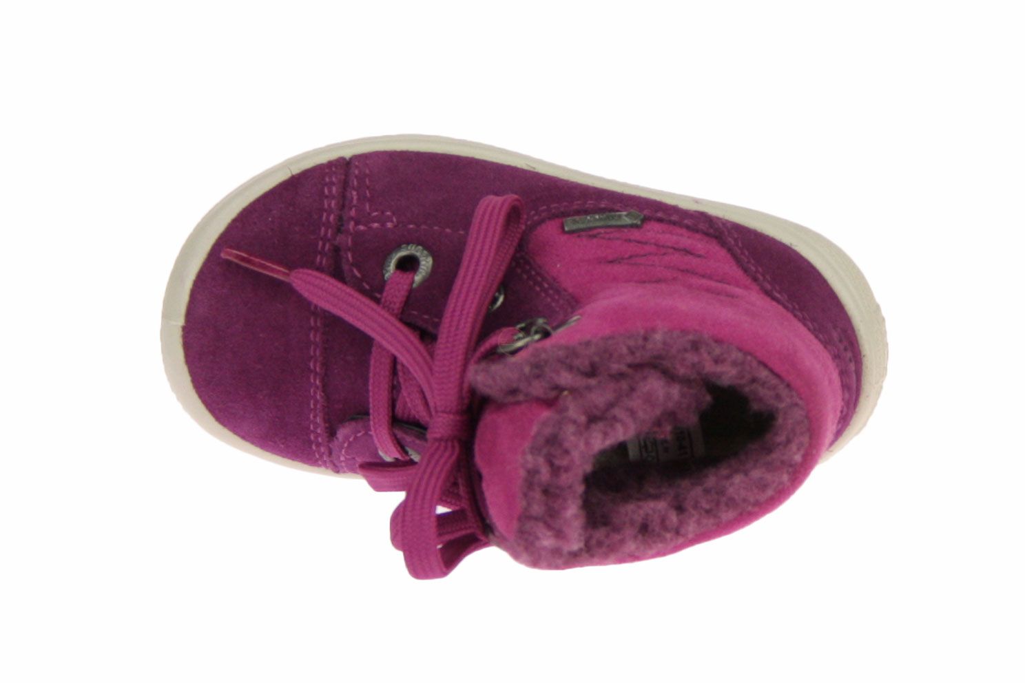 Roze suede outdoor schoen voor meisjes van het merk Superfit. De schoen heeft een gore-tex label, dit wil zeggen dat de schoen volledig waterdicht is. Binnenin is de schoen met wol gevoerd.