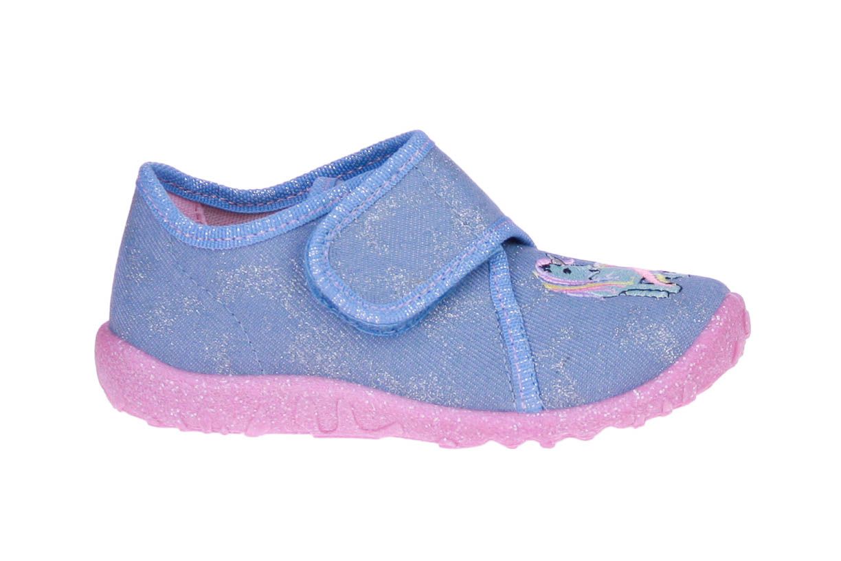 Blauw textielen meisjespantoffel van het merk Superfit.