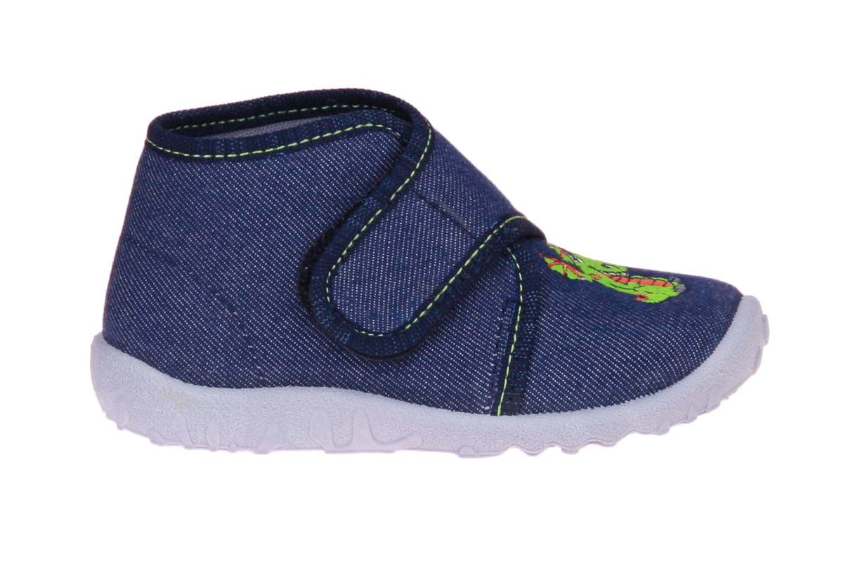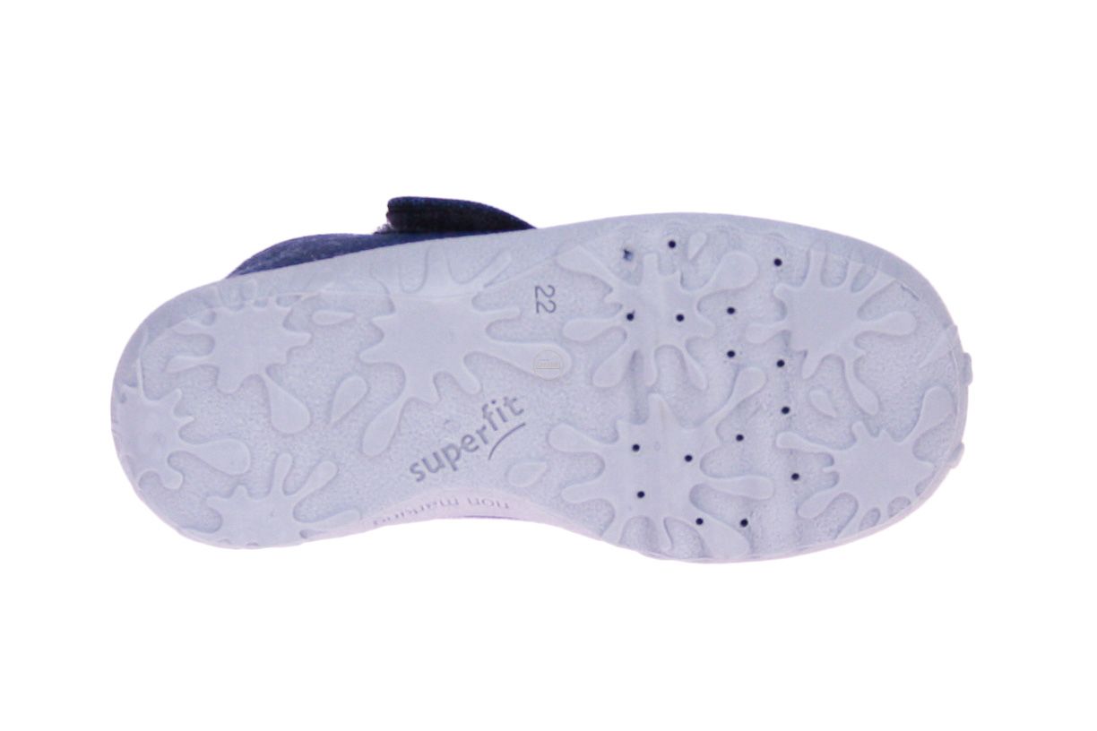 Jeansblauwe textielen jongenspantoffel van het merk Superfit.