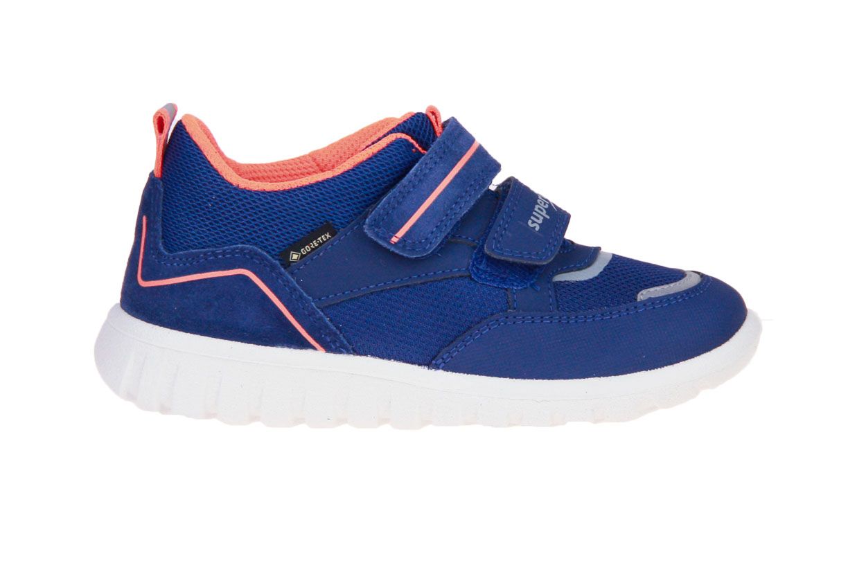 Blauw gore-tex jongensschoen met oranje accenten van het merk Superfit.