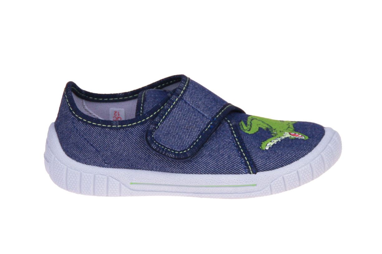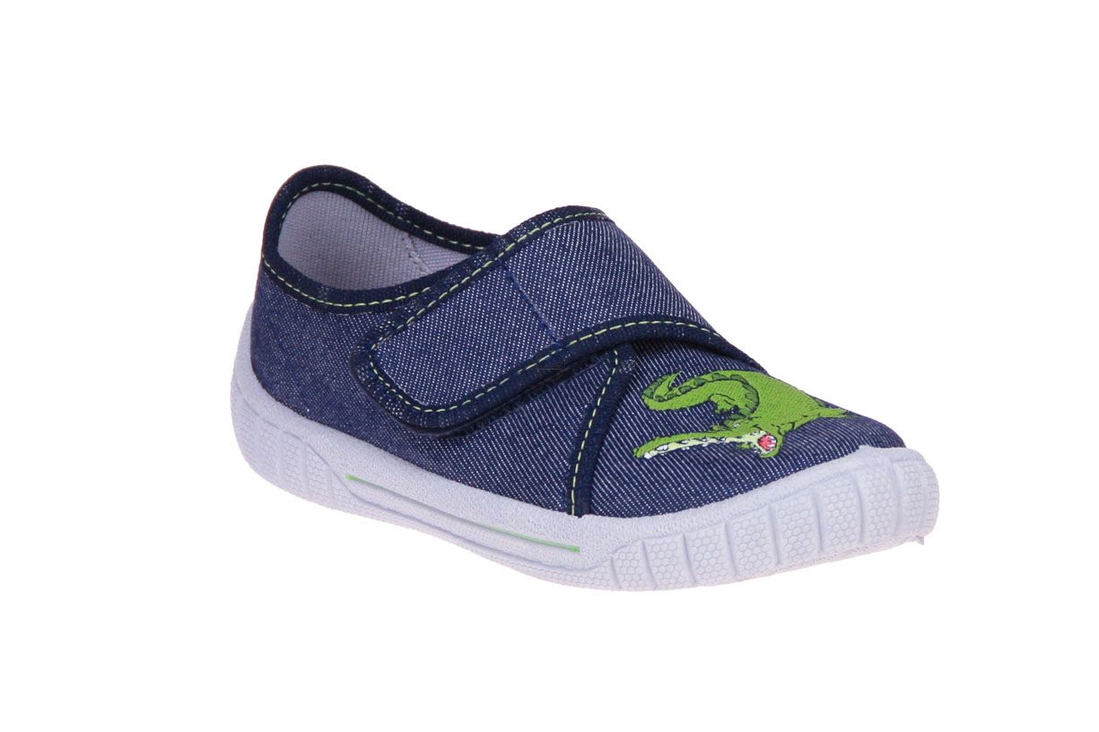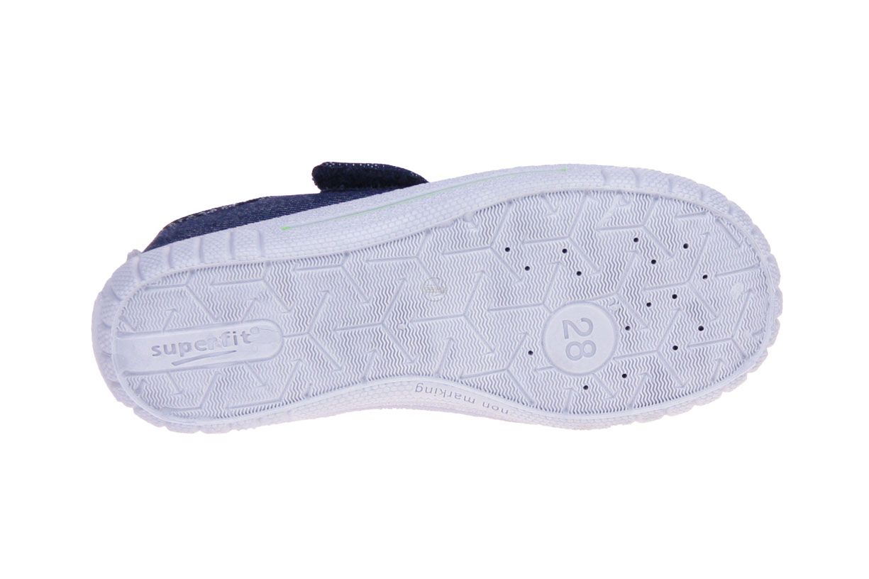 Blauw textielen jongenspantoffel van het merk Superfit.