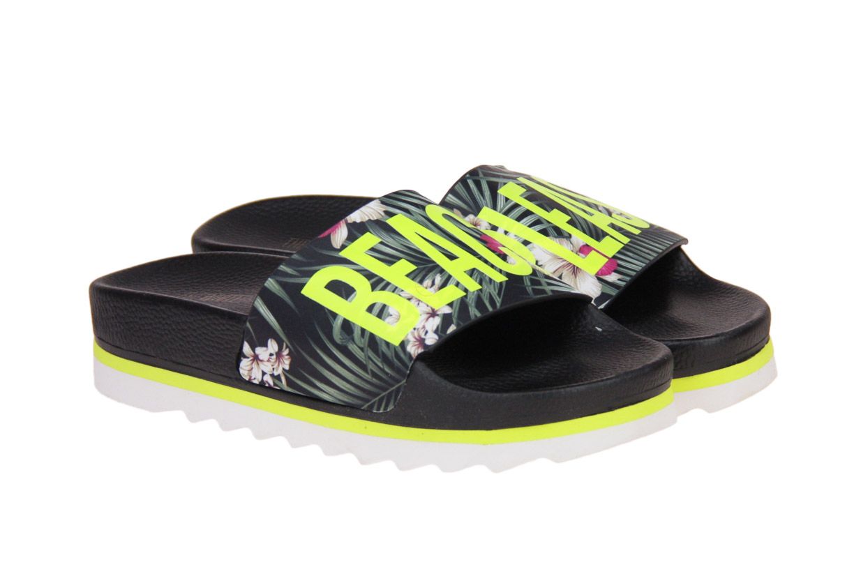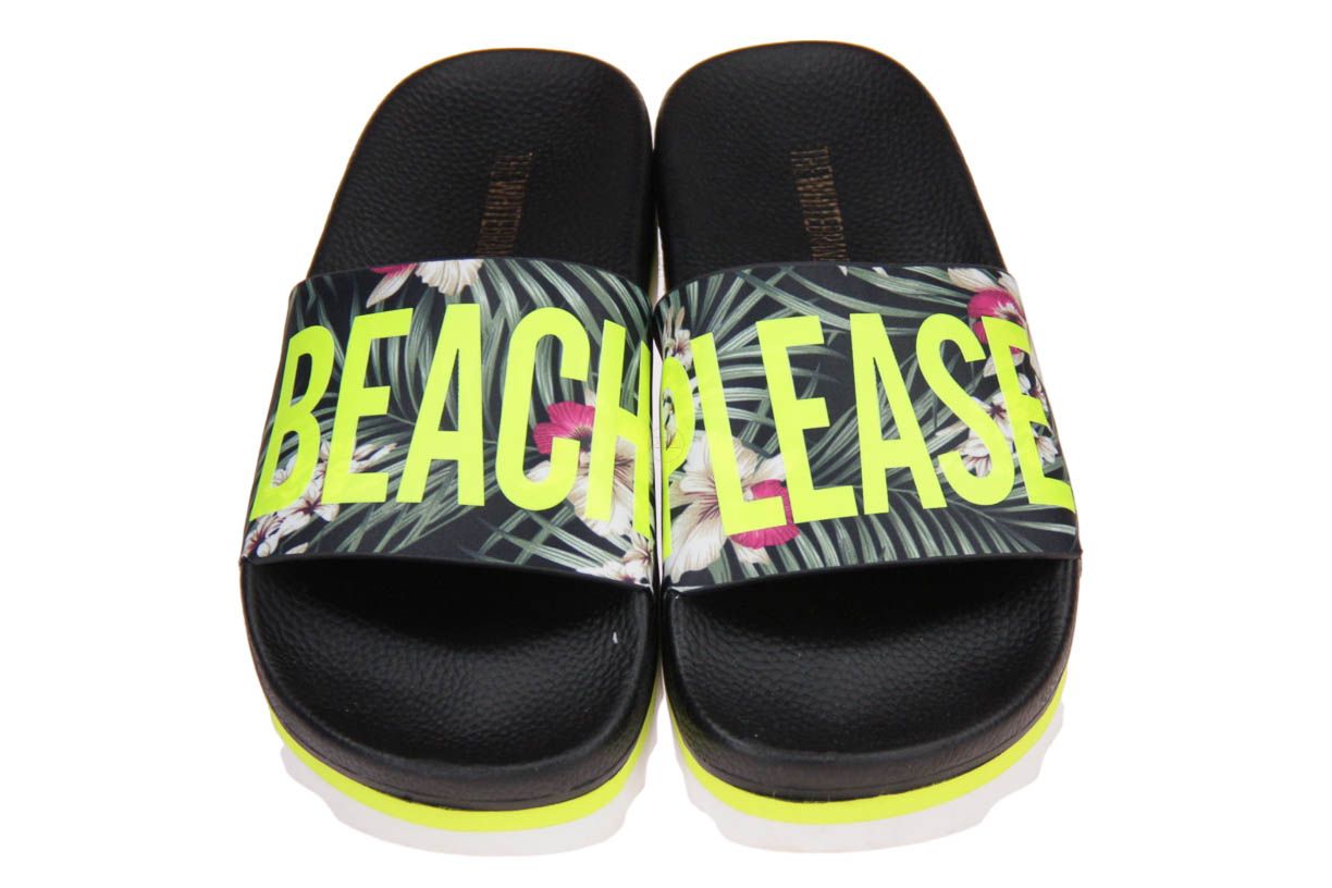 Zwart rubberen damesslipper van het merk The White Brand.