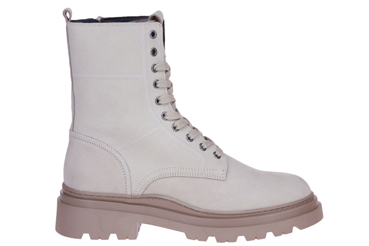 Beige nubuck korte meisjeslaars van het merk Hip. De binnenzool is uitneembaar, ideaal voor steunzolen.