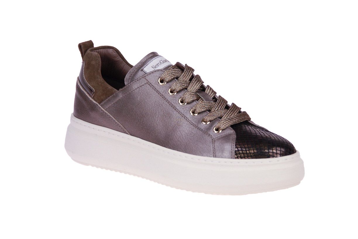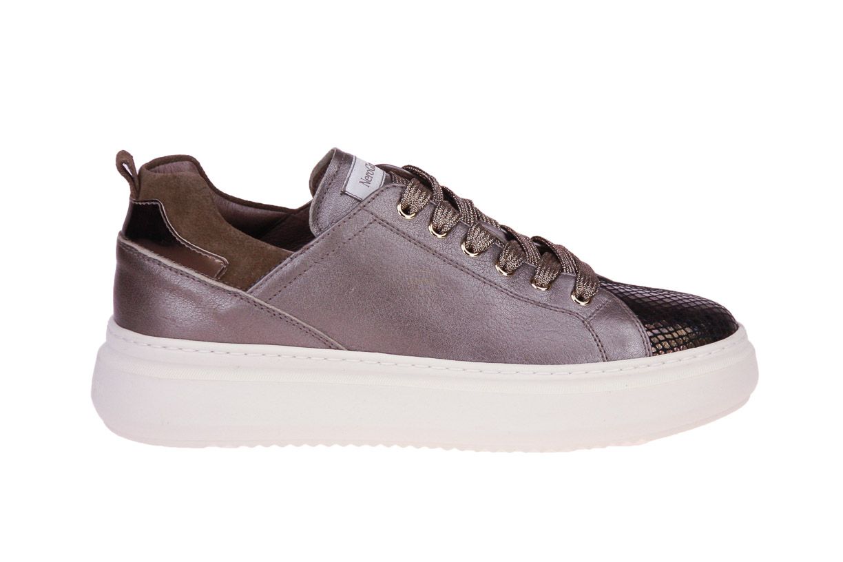 Bruin metalllic lederen damesschoen van het merk Nero Giardini. De binnenzool is uitneembaar, ideaal voor steunzolen.