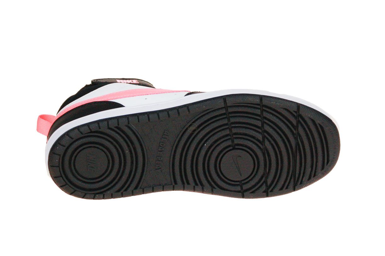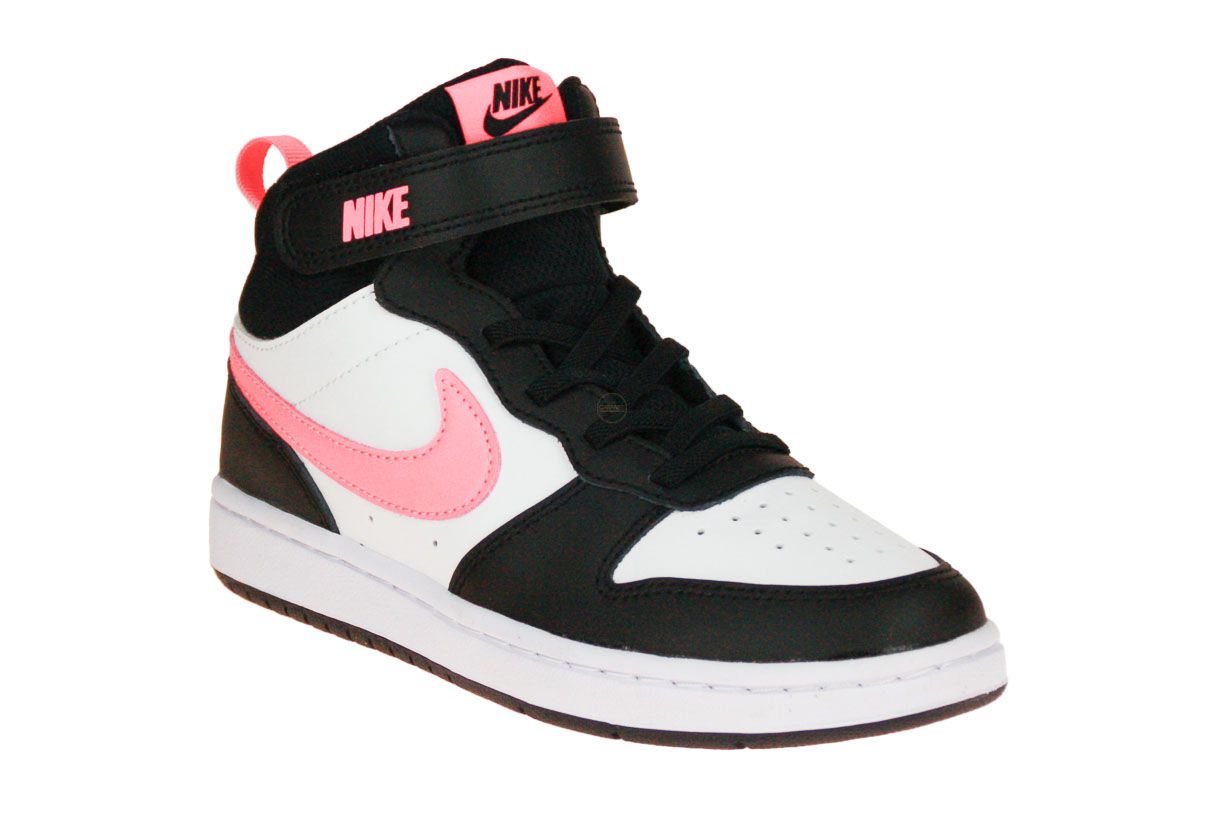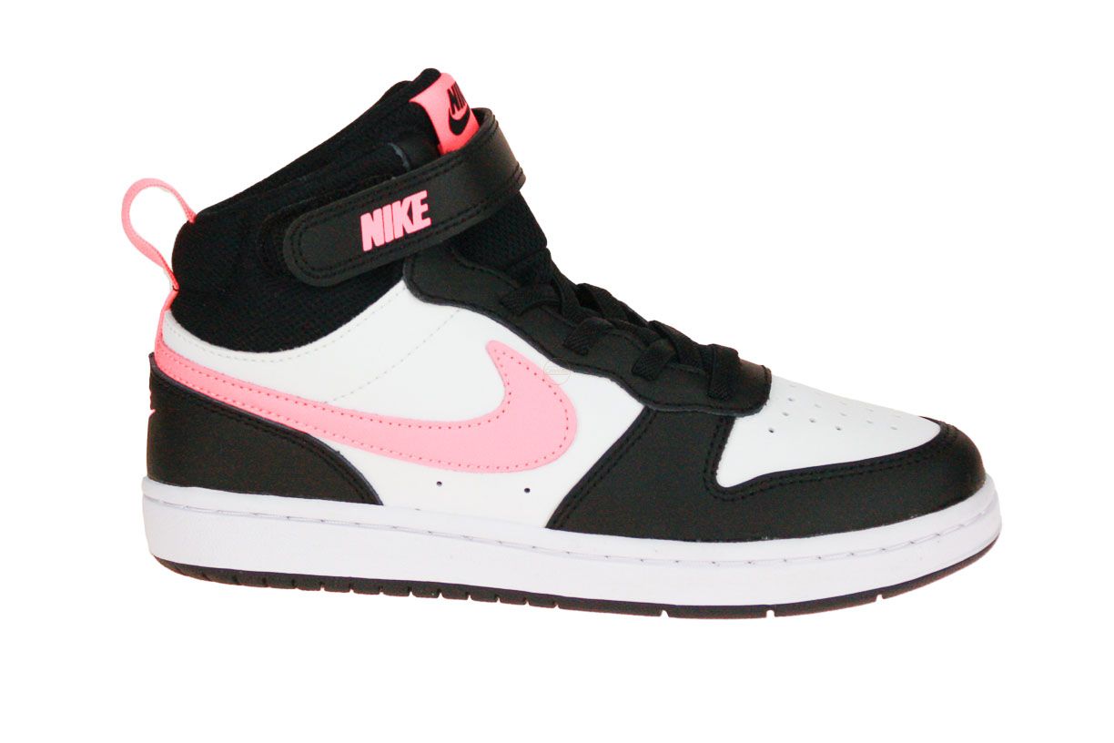 Zwart synthetisch lederen sneaker met roze en witte accenten van het merk Nike.